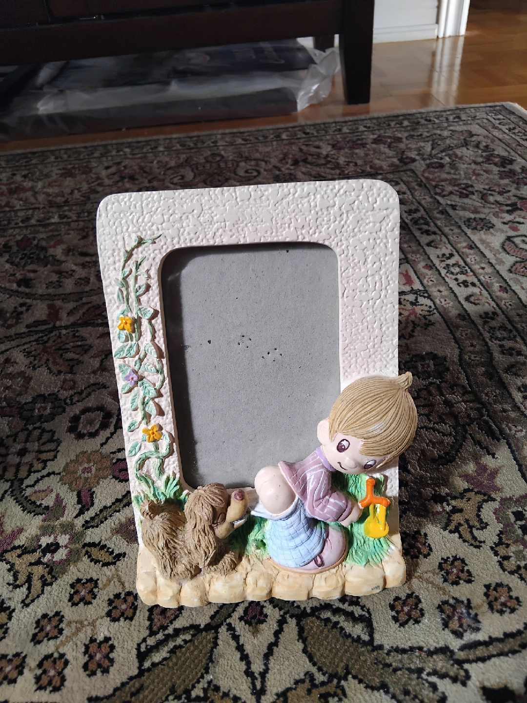 Cute picture frame for kids. It's in great condition and ready to display your favourite photos. featuring precious moments
