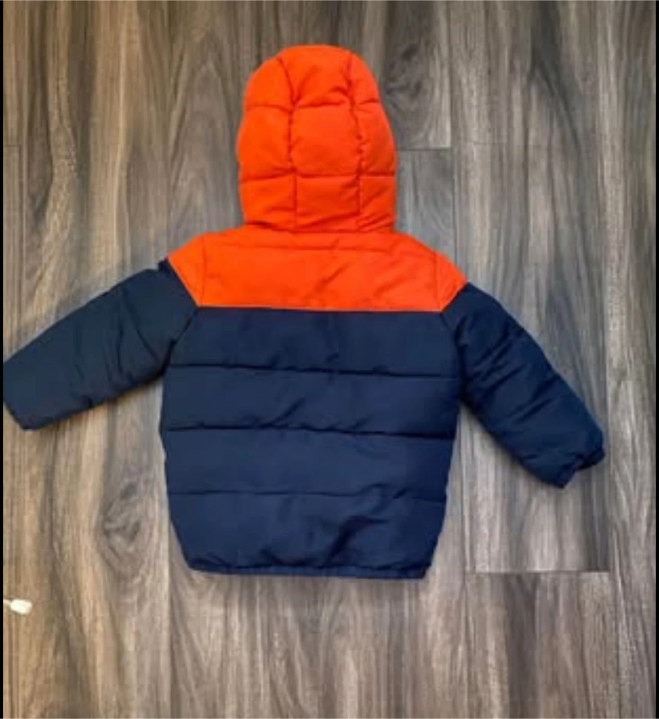10A cozy puffer jacket for kids, featuring a stylish blue and orange colour block design! Perfect for keeping your little one warm during chilly days