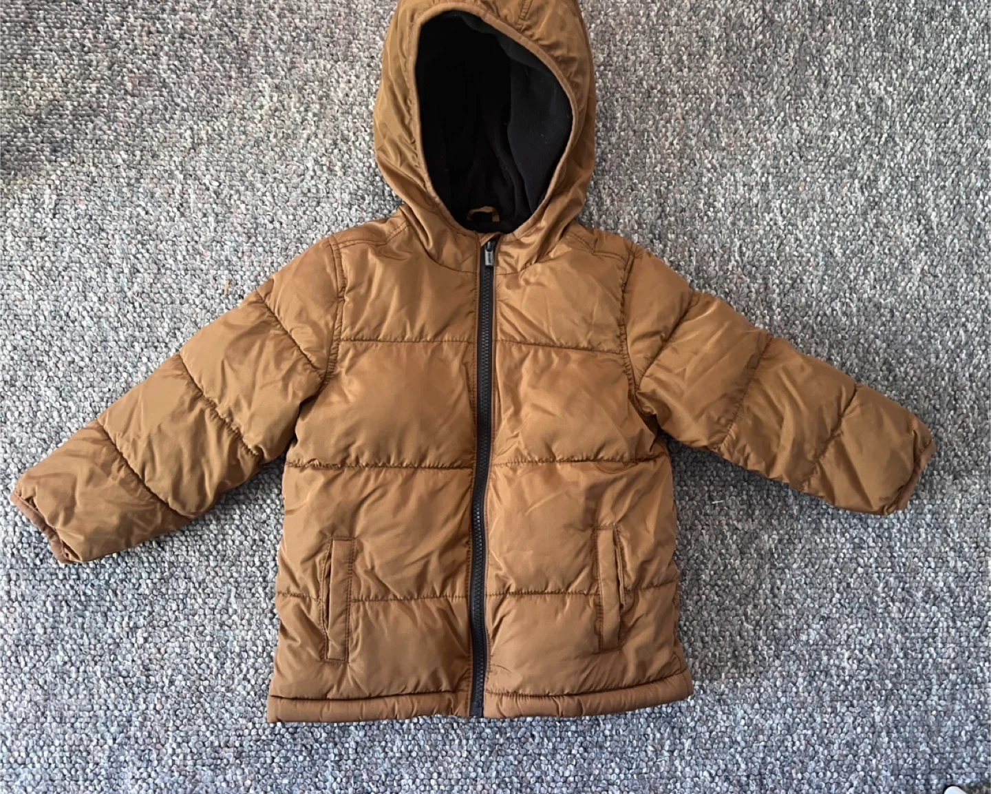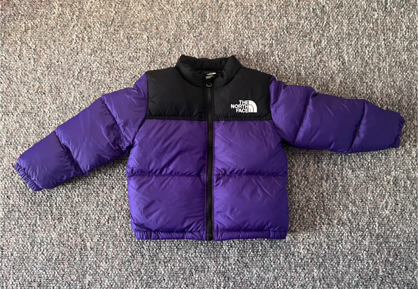 10Selling a bundle of kids' puffer jackets. There's a brown hooded jacket, a grey quilted jacket, and a purple and black North Face puffer. Great for keeping your little one warm during the colder months!