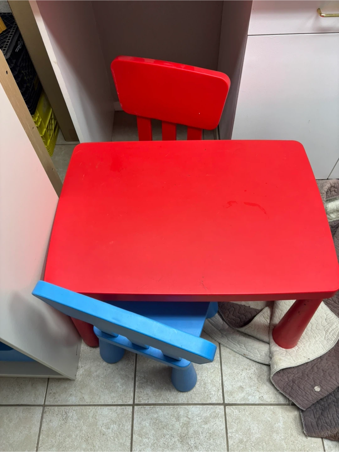 Kids plastics table and chairs. All in good condition. 3 chairs for sure, on the hunt for the fourth. FCFS, pick up and cash only. Dog friendly home.