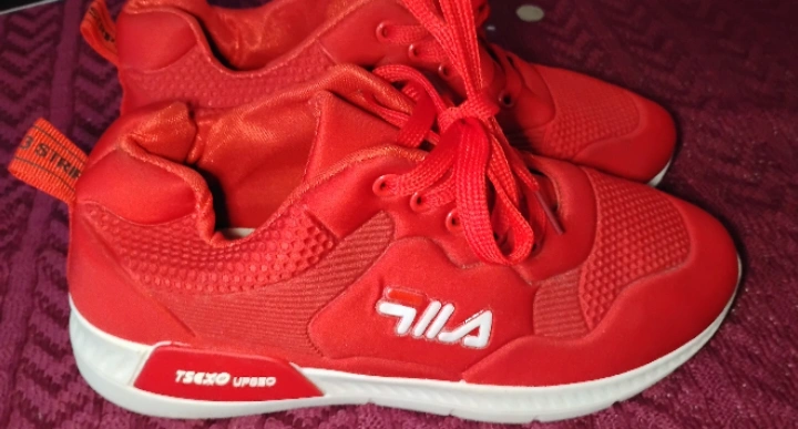 25Pair of red Fila TS6XO UP60 sneakers. Red laces. White soles. Lightly used, in excellent condition. Size 40/ size 7. Unisex -- look great for a boy OR a girl. huntsville