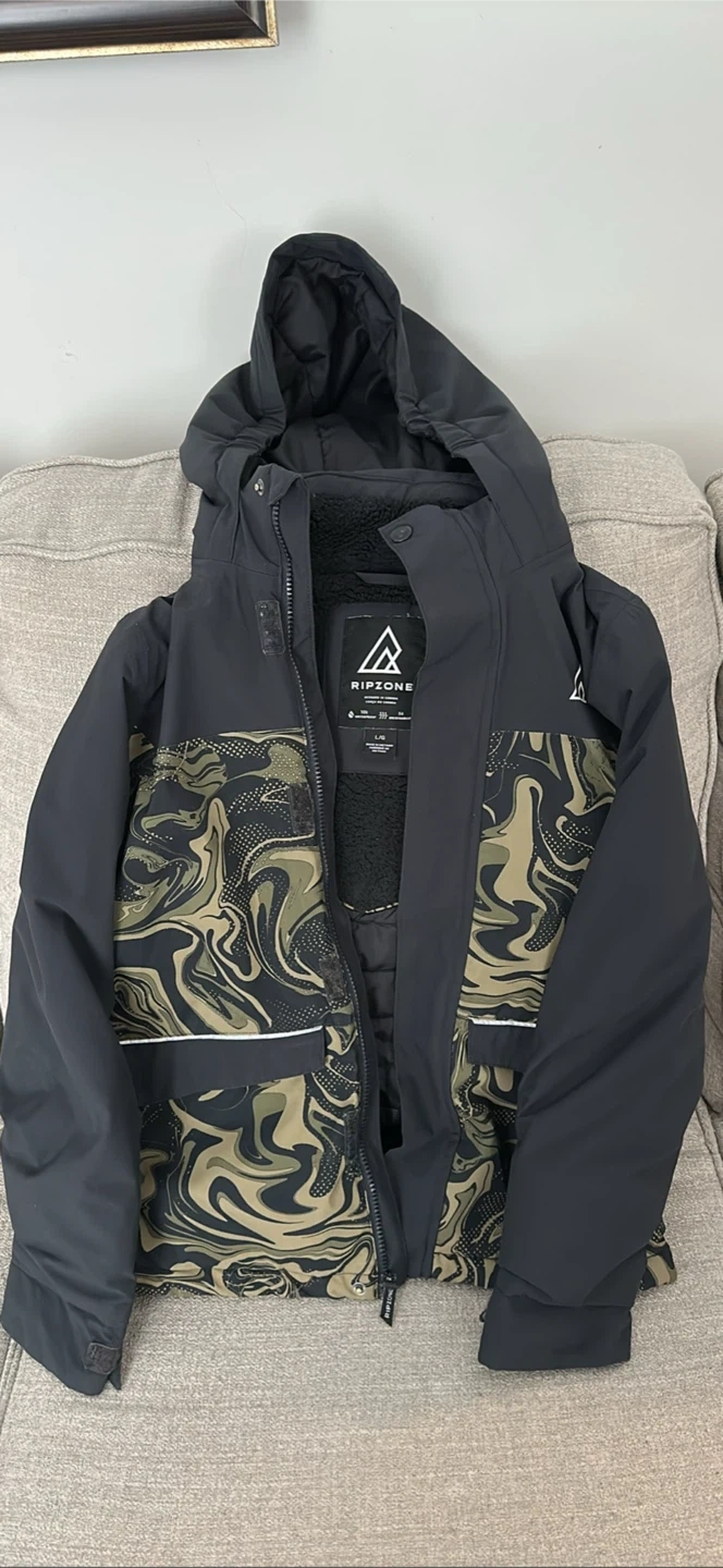 68Kids Ripzone jacket in size L/G. It's black with camo accents. Perfect for staying warm!