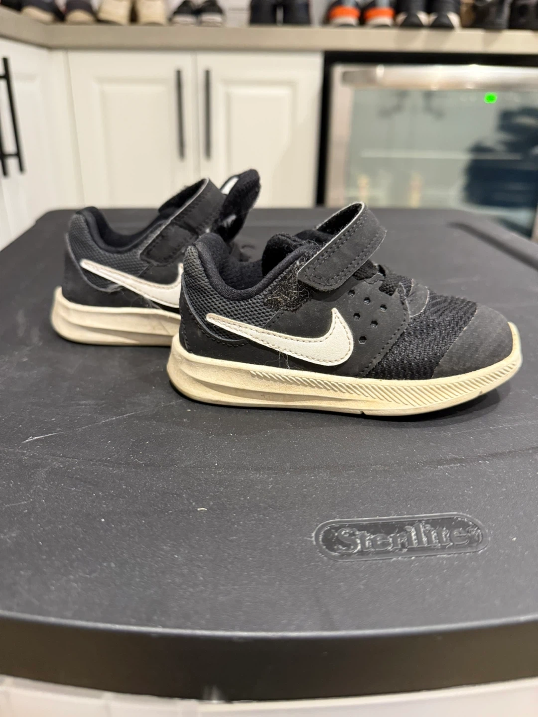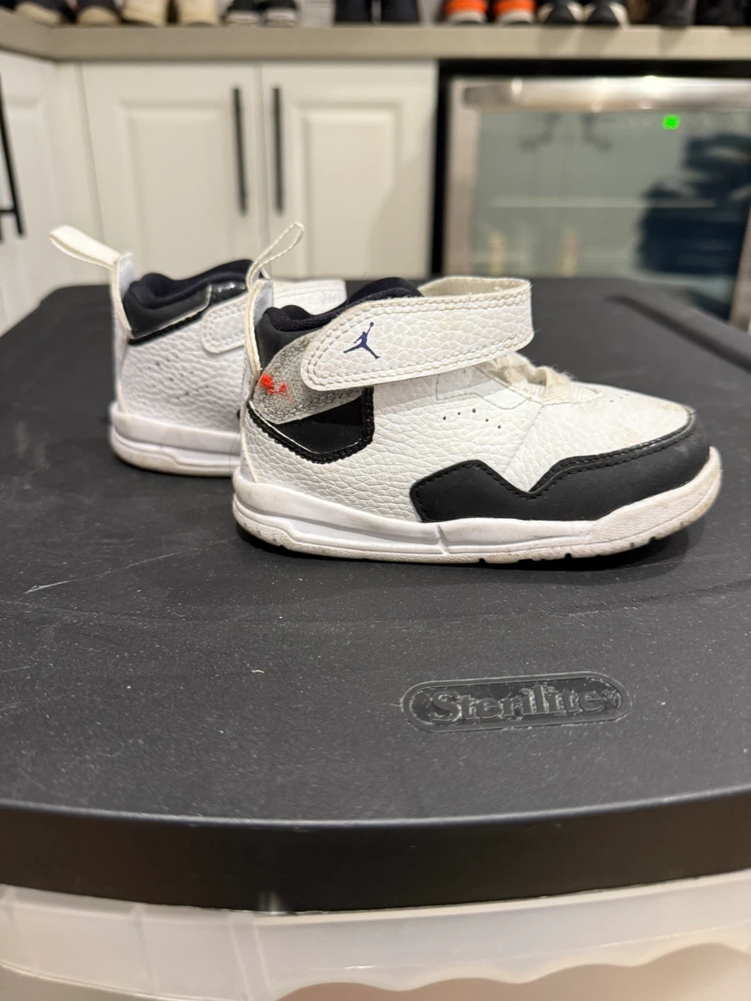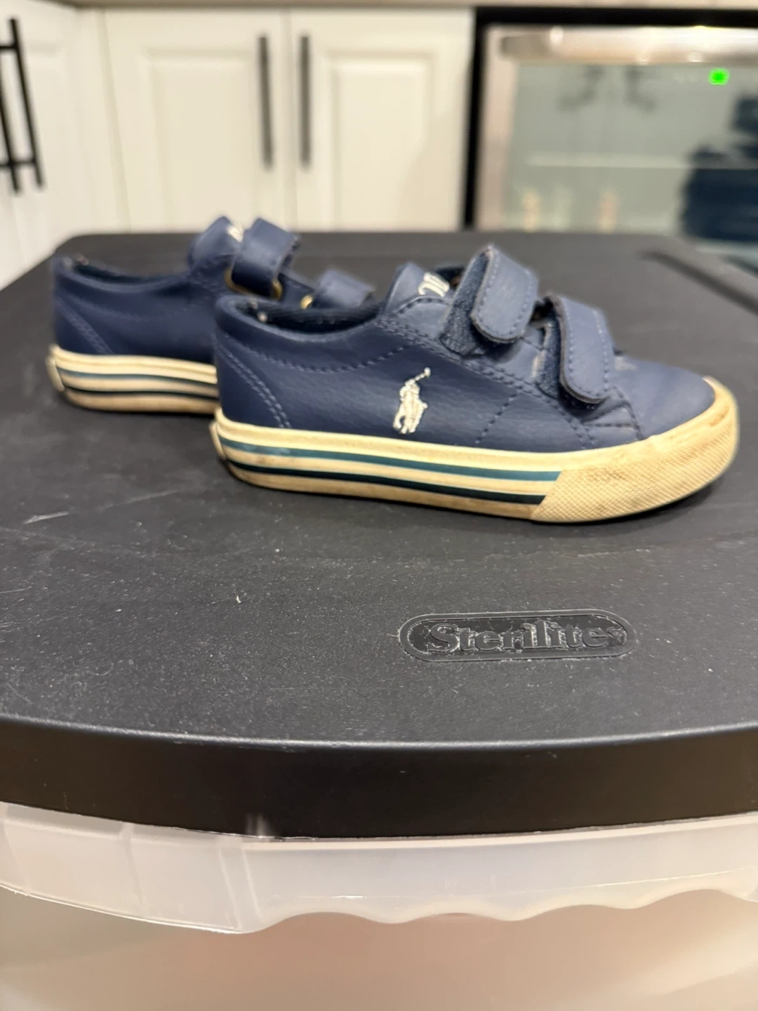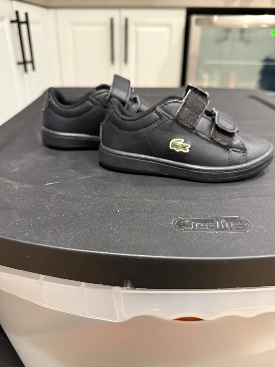 Selling a bundle of gently used kids' shoes! Includes: - Ralph Lauren blue sneakers with velcro straps - Adidas U_Path Run black sneakers - Lacoste black sneakers with velcro straps and croc logo - Jordan white and black sneakers with velcro straps - Nike grey sneakers with velcro straps All size 7 Being sold as a bundle for $140