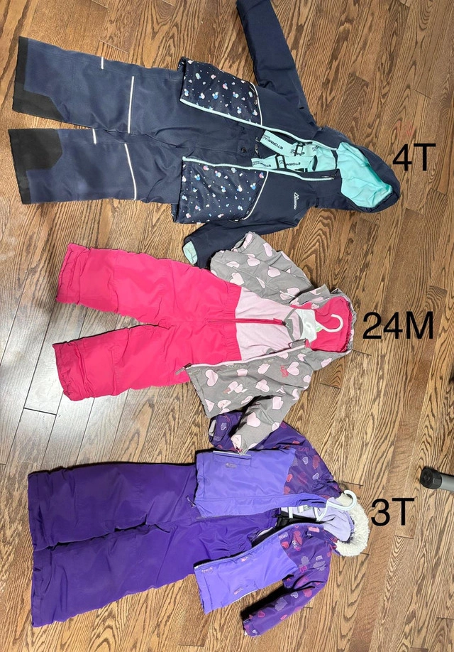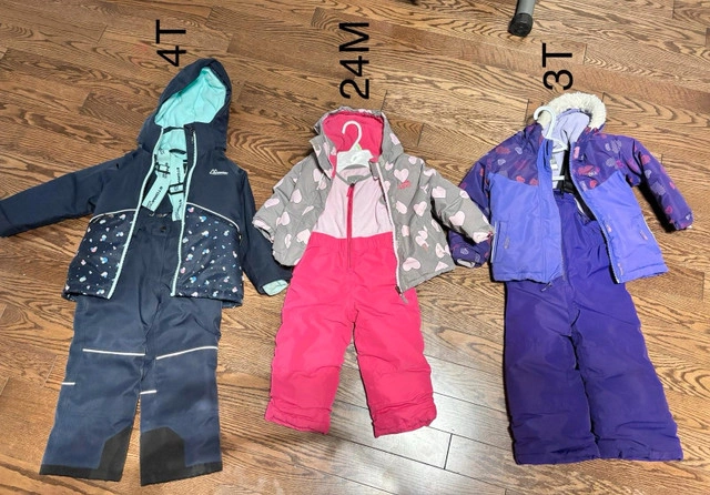 10Kids / Children Snowsuits. The sets are in used - good condition. The sets are stylish and functional, keeping your child warm and dry all winter long. Great for everyday use. Condition: Used - very Good. Sizes: 24 months, 3T & 4T. Each one at $20. All 3 together at $50. Pickup: Brampton. For Sale By: Owner