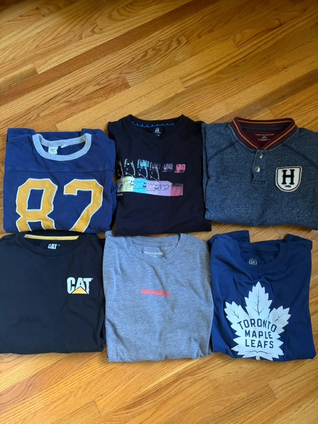 5Selling a bundle of kids' t-shirts Includes brands like Ripzone, Abercrombie Kids, Tommy Hilfiger, Gap, CAT, and a Toronto Maple Leafs shirt. All in good condition for 10/12 years old