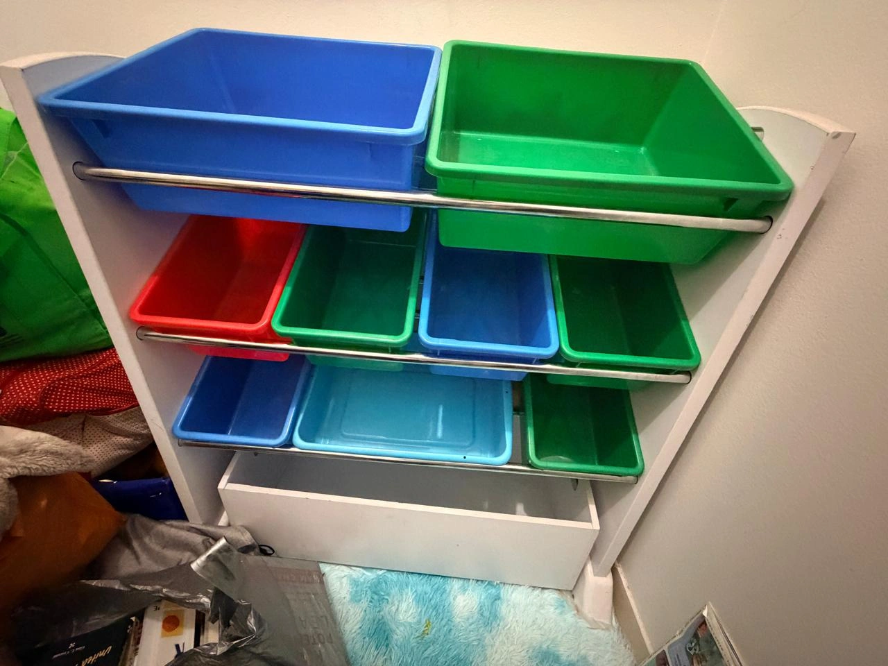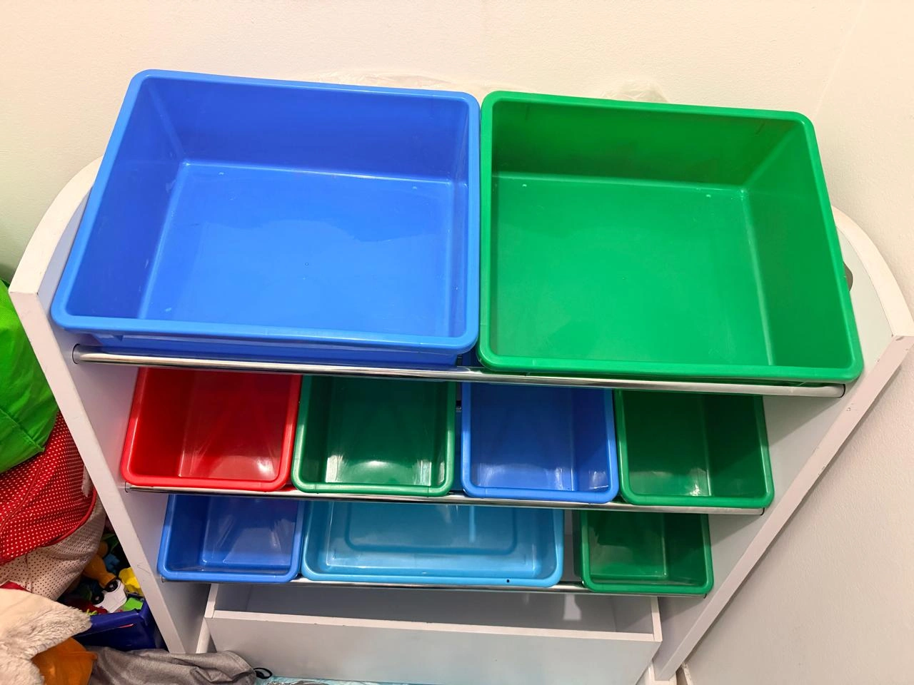 Declutter your kids' room with this handy toy storage organizer! It comes with multiple bins in various colours to help sort toys, books, and other items. It's a great way to keep everything tidy and accessible for your little ones