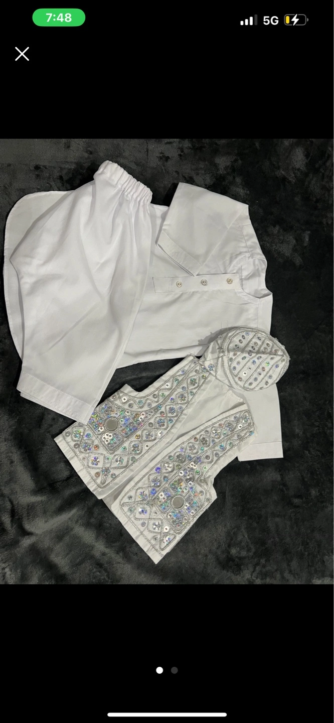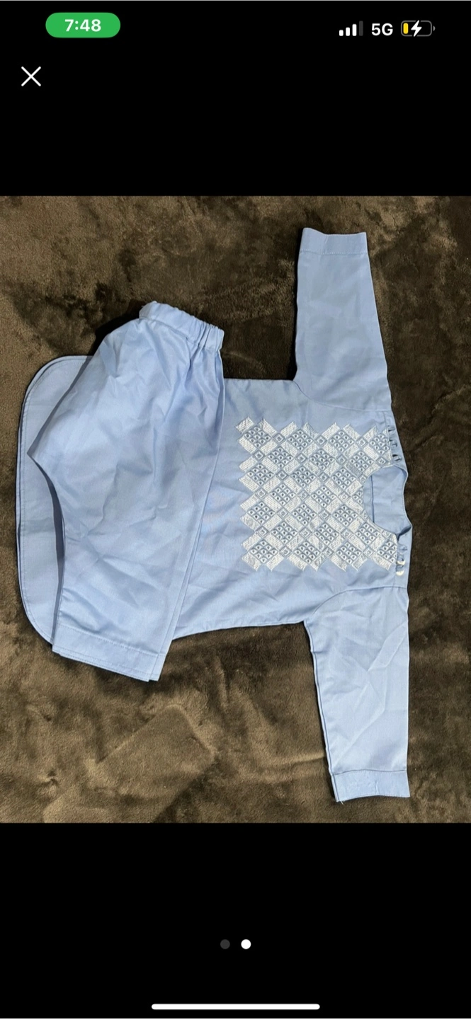 selling a traditional outfit for kids. The outfit is in good condition and features a unique design. Perfect for cultural events or special occasions! White $15 Blue $10