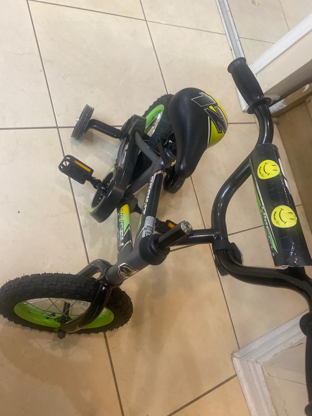 10Selling a gently used kids' training bike in black and green. It's perfect for helping your little one learn to ride! Features include training wheels and a comfortable seat. Ready for a new home!