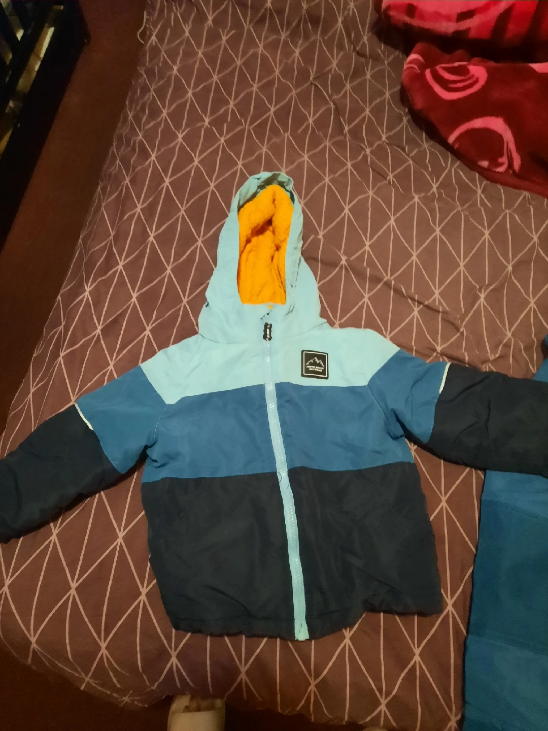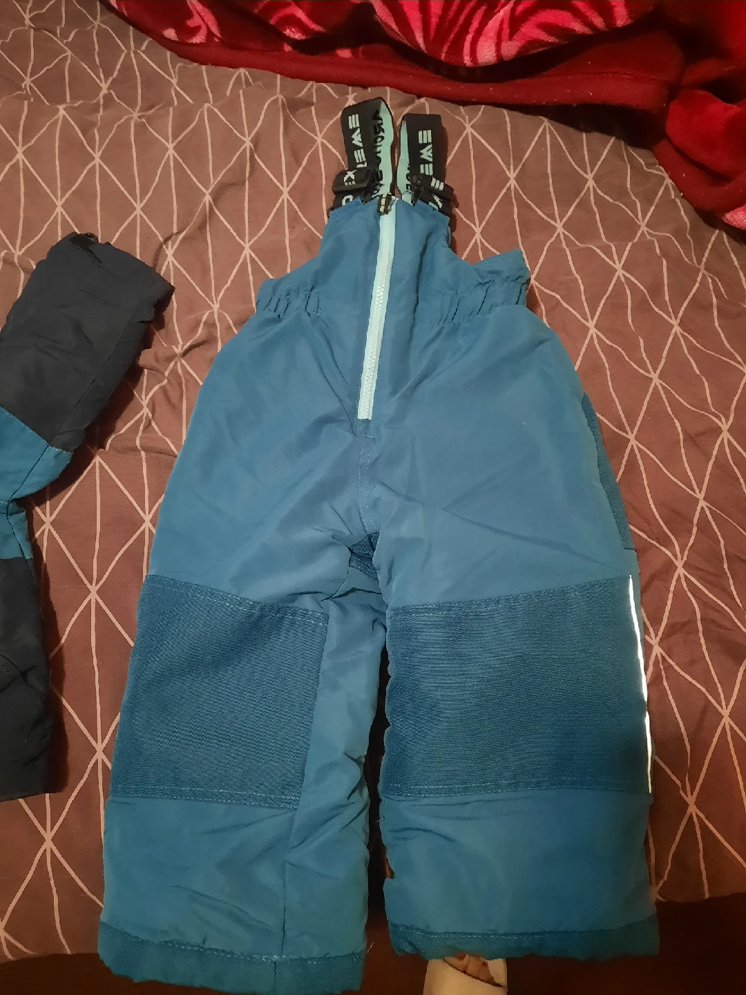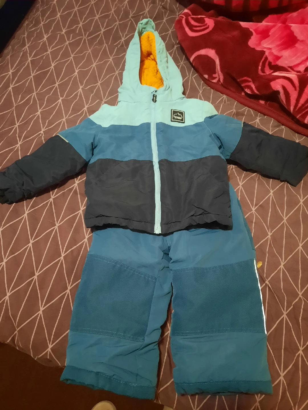 60Selling a kids' winter snowsuit, including both the jacket and pants! It's in great condition and ready for some snowy adventures. The snowsuit features a stylish colour block design in shades of blue and black. Perfect for keeping your little one warm and dry this winter season