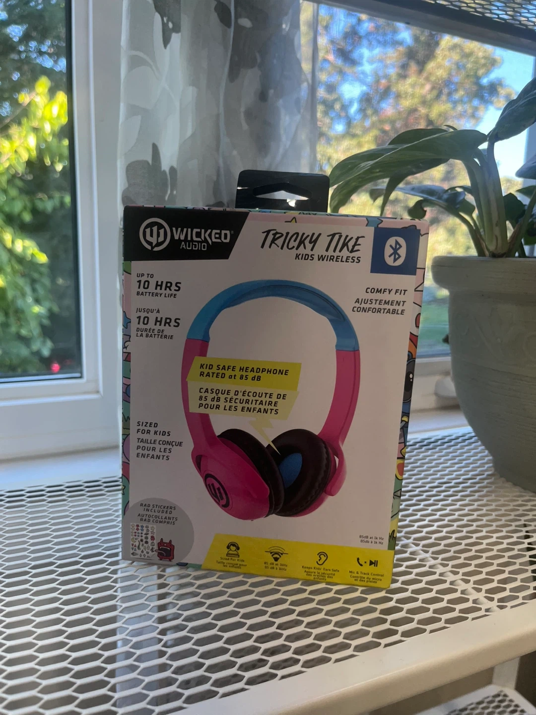 These Wicked Audio Tricky Tike kids wireless headphone are perfect for your little one! Brand New In BOX (unopened). The headphones are rated at 85dB to protect kids' ears, feature up to 10 hours of battery life, and are sized for kids. Specifications: (Brand: Wicked Audio) * Wireless * Sized for Kids * Keeps Kids' Ears Safe * 85dB at 1kHz * Comfy Fit * Safe Volume Control * Mic and Track Control Safe Volume Control – On-Ear Bluetooth Headset for Children/Toddler/Classroom/Travel, Ages 2+ Works with Smartphone/Tablet/PC Sells for $40 plus taxes at WalMart (see pic) and around $30 at Amazon (see link below ). https://a.co/d/bZJ2njg I’m asking only $20 (or best offer ).