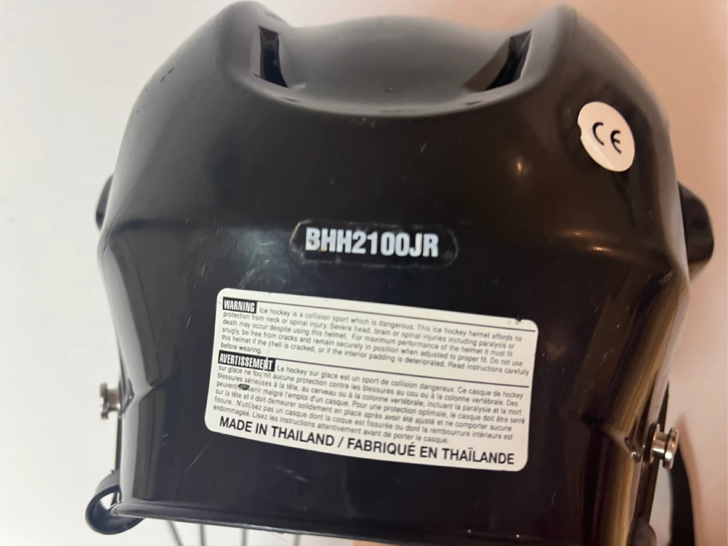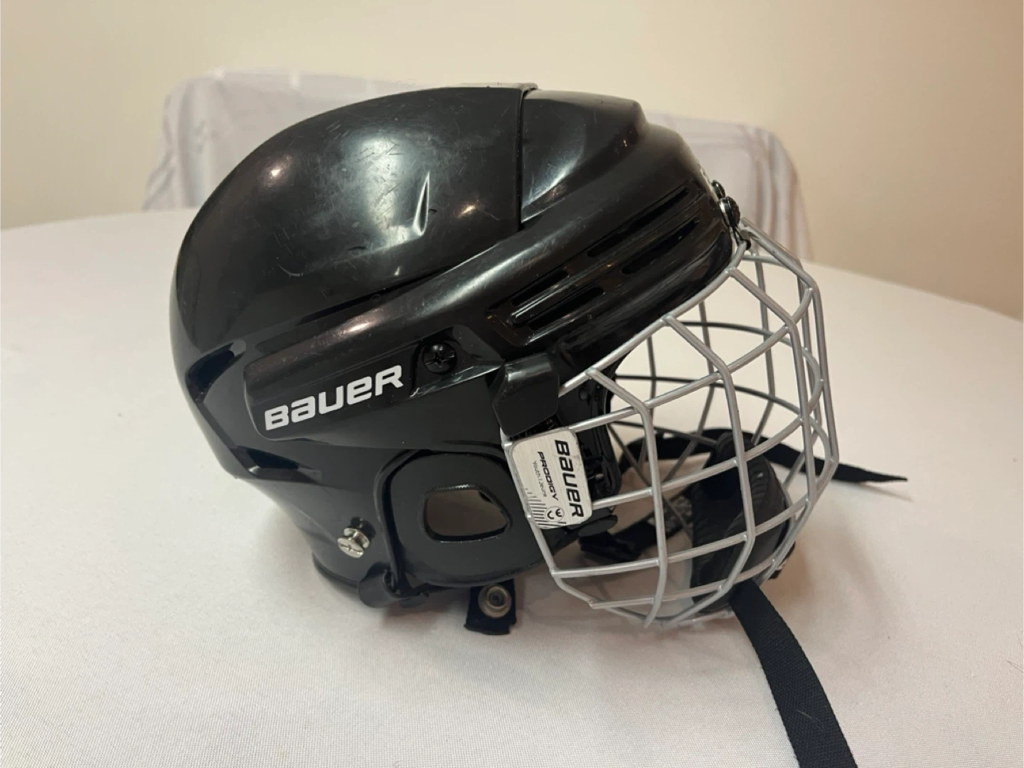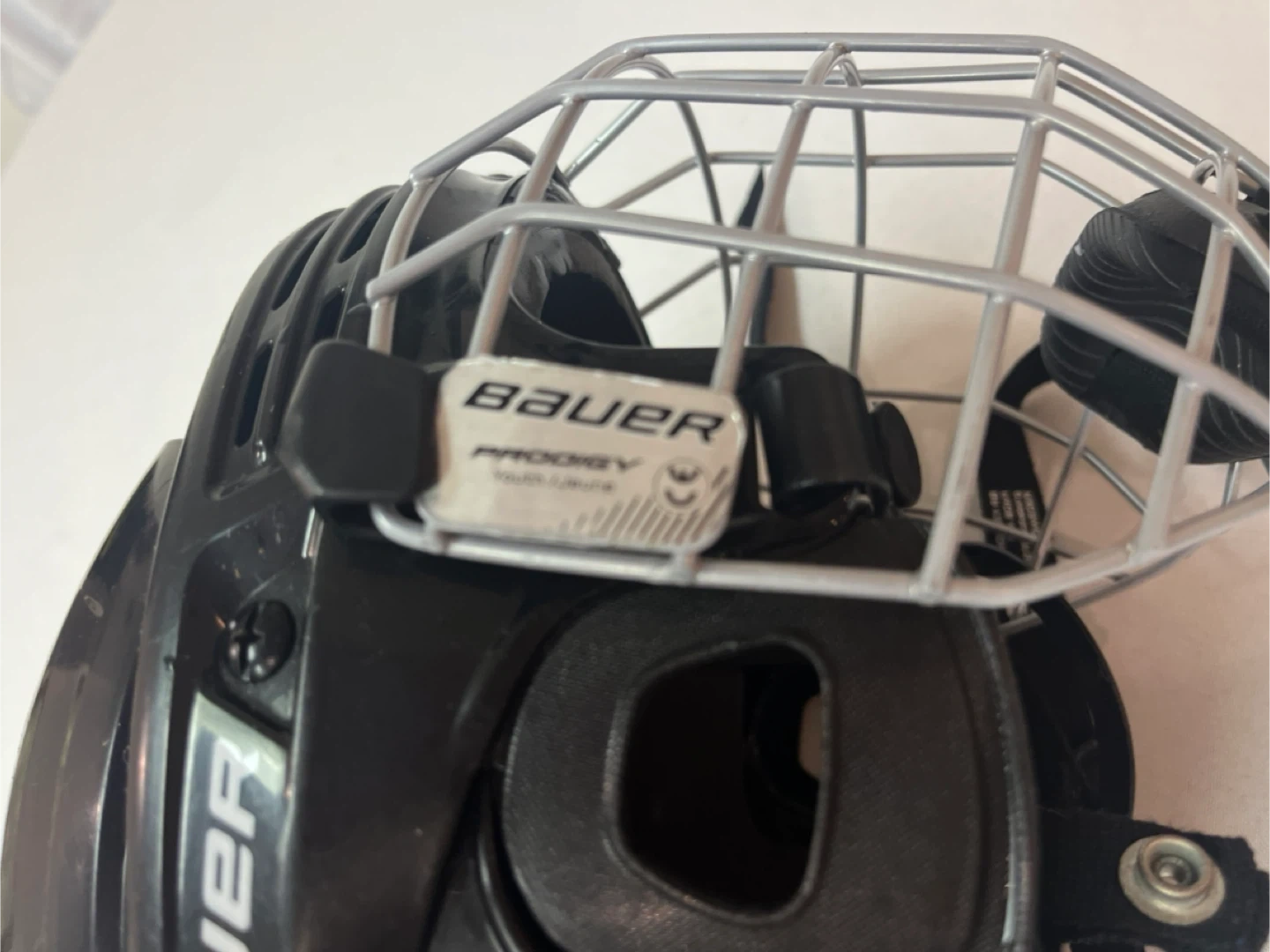 1000+Bauer Hockey or Skating Helmet with the face grill attached Helmet Model: BHH2100JR Cage Model: Prodigy Youth Colours - Black & Silver Size: XS - ages 2.5 - 5.5 Inches: 6 1/4 - 6 7/8 Or 50-55 cm Asking: $30 Paid: $75 new for both pieces at Canadian Tire Excellent Condition Adjustable Sizing * It provides protection with a customized fit. * Single density shell with quick tool adjustment system * Dual-density Cellflex foam for protection and comfort * Facemask with floating chin cup. * CSA, HECC, CE certified. No Smokers, No Pets Midtown Toronto Location