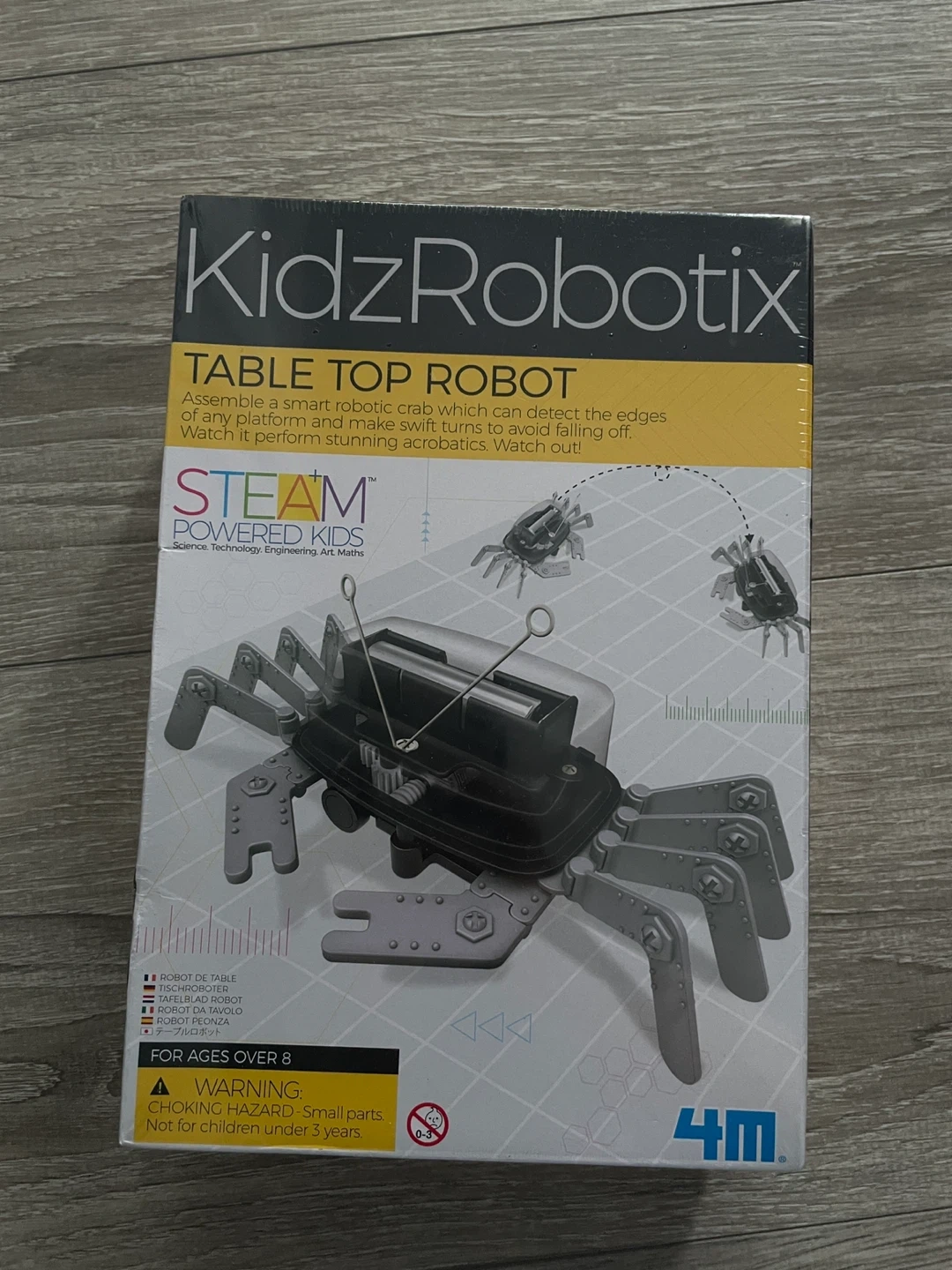 Selling a KidzRobotix Table Top Robot kit! Assemble a smart robotic crab that can detect edges and avoid falling off. It's a STEAM-powered kit, perfect for kids 8 and up who are interested in science, technology, engineering, art, and maths