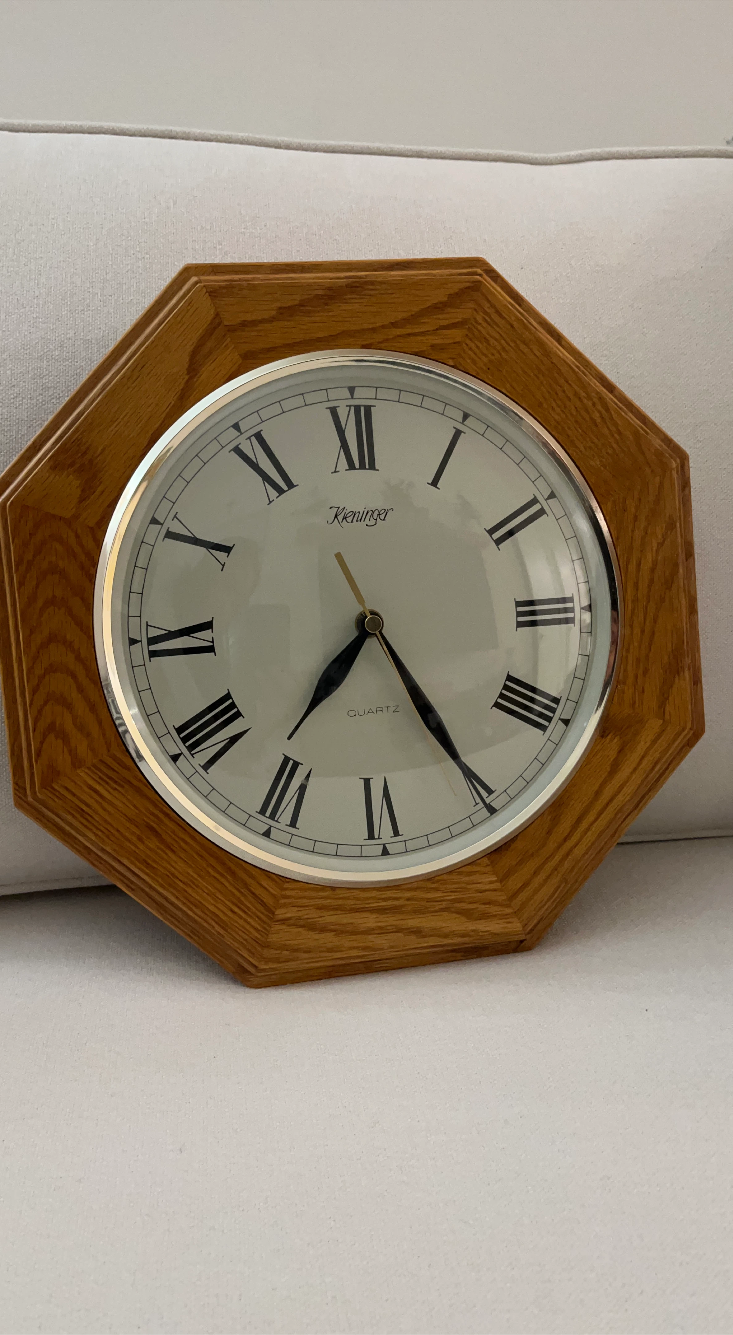 10Selling a Kieninger Quartz wall clock. The clock has a wooden frame and a classic design with Roman numerals. It's in great condition and would look lovely in any room!