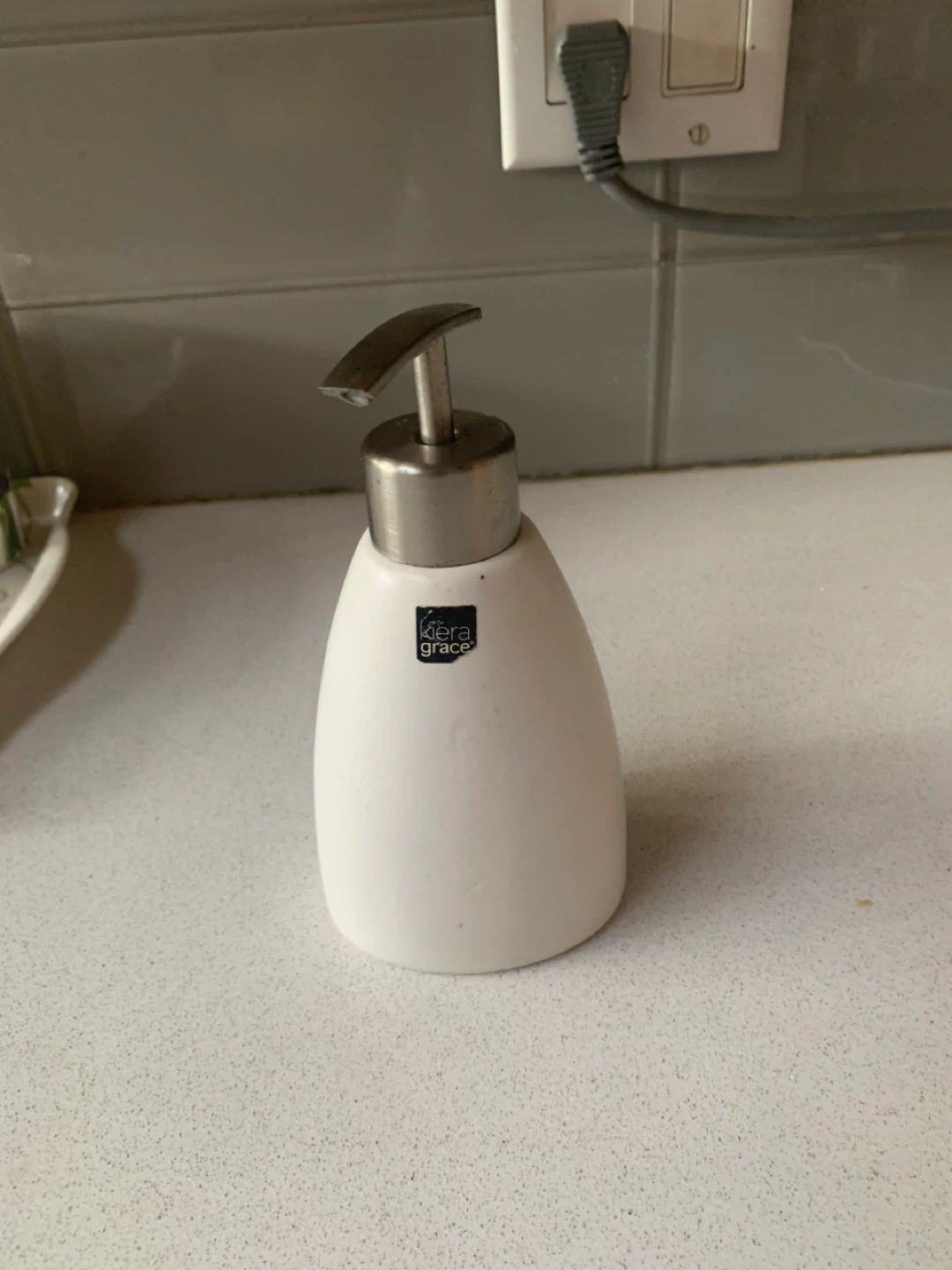 Selling a Kiera Grace soap dispenser! It's a simple, elegant way to keep your sink area tidy. The dispenser is white and in great condition, ready to add a touch of style to your bathroom or kitchen