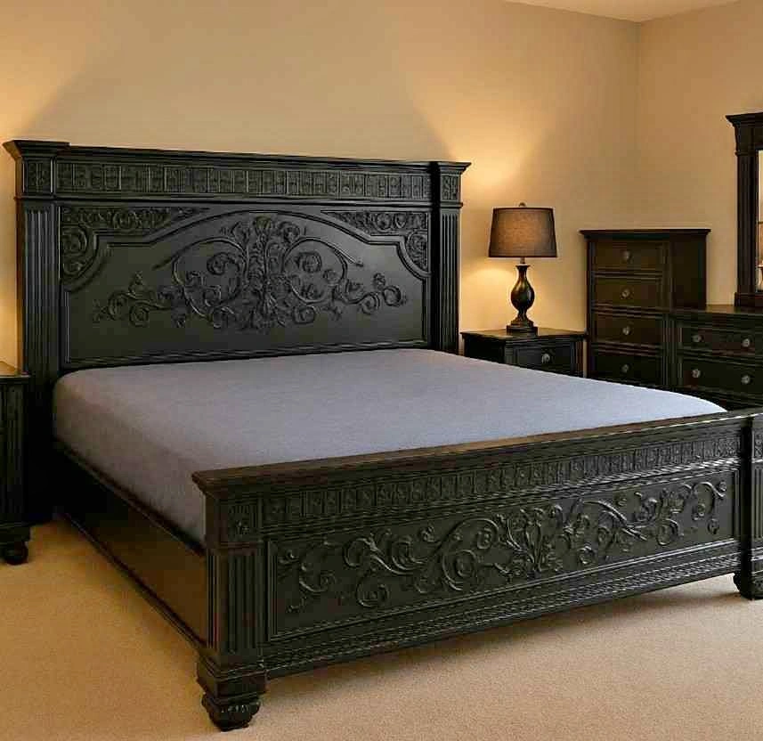 Vintage Wood Bedroom Set - Dresser, Headboard, Nightstand