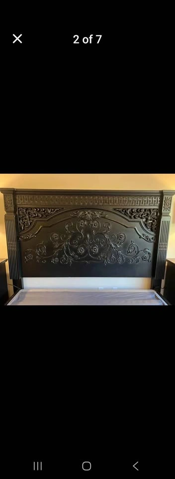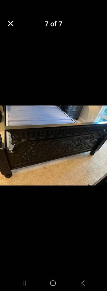 King bed set. Headboard sides and footboard, 2 side tables (one side has bottom drawer that needs a new slider) tallboy chest, Dresser and mirror. *note mattress and box not included*. 750 firm. Serious enquiry only. Pickup this weekend! No delivery