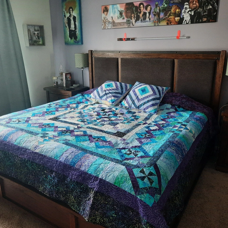 65We purchased from Ashley furniture, good quality bed frame just too big for our space now. It has a wooden frame with an industrial style look featuring metal accents and 3 panels of charcoal fabric backing on the headboard. Fabric is still in decent shape as well as the wood (no visible dings or scratches). Comes with boxspring that is in 2 peices for easy move ability. Boxspring has minor signs or wear (some of the plastic corner pieces are loose but still intact and underside may have a hole or two). Currently disassembled and read to go! All pieces there, and it is fairly simple to put together! Does not include top mattress or bedding.