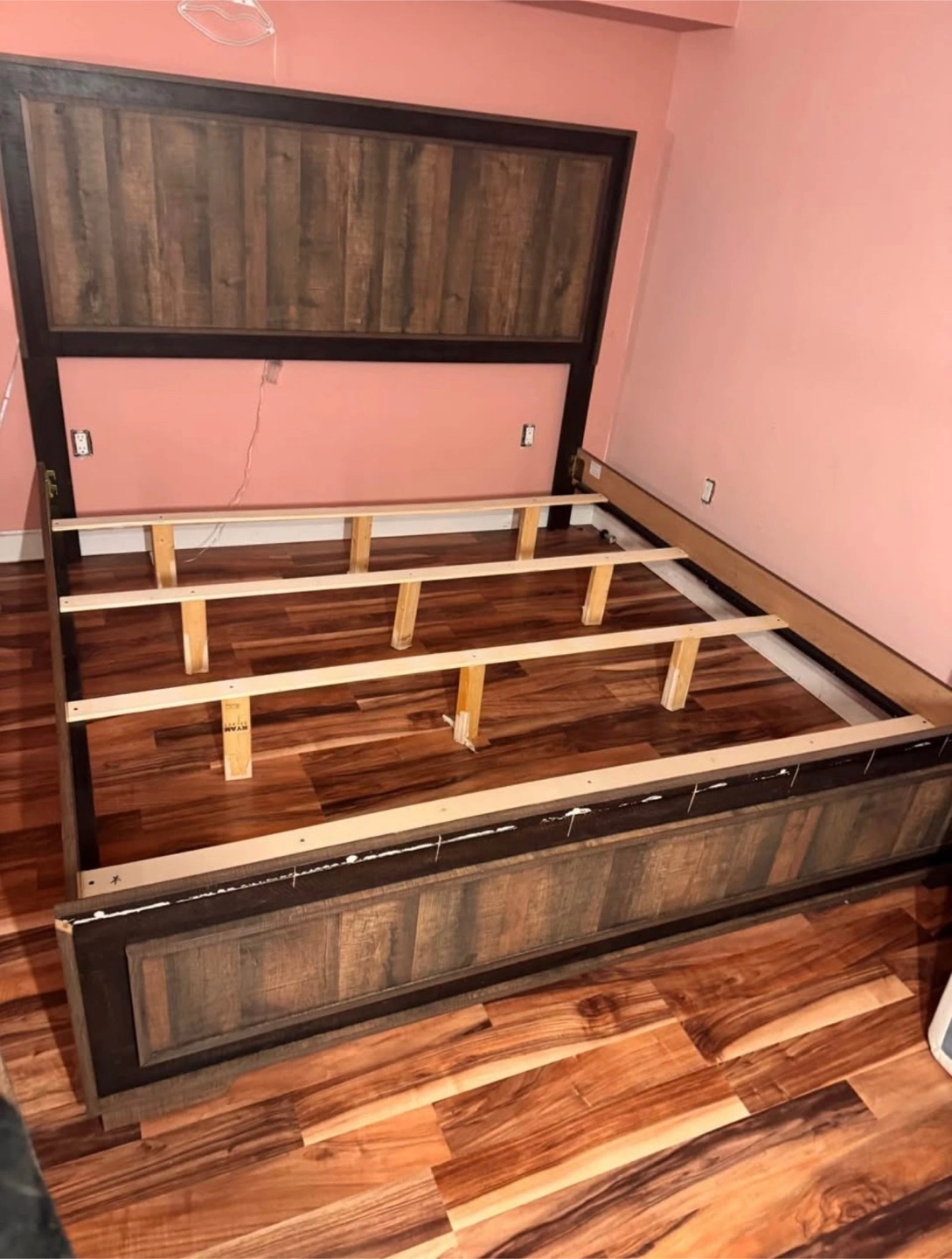10King size bed. 2 years old. Good condition. Has the front decorative part that fell off but just needs to be glued on! Used a few times when my daughter was home from school