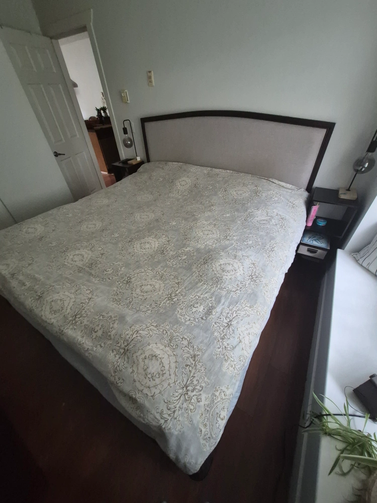 40king size bed with dormeo mattress, spring boxes, frame and headboard. mattress like new condition always had protection on, still covered under sleep country warranty from pet and smoke free clean home