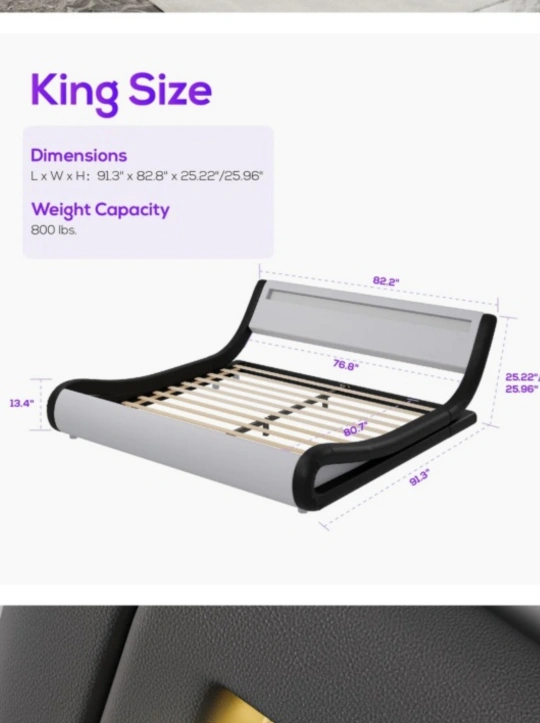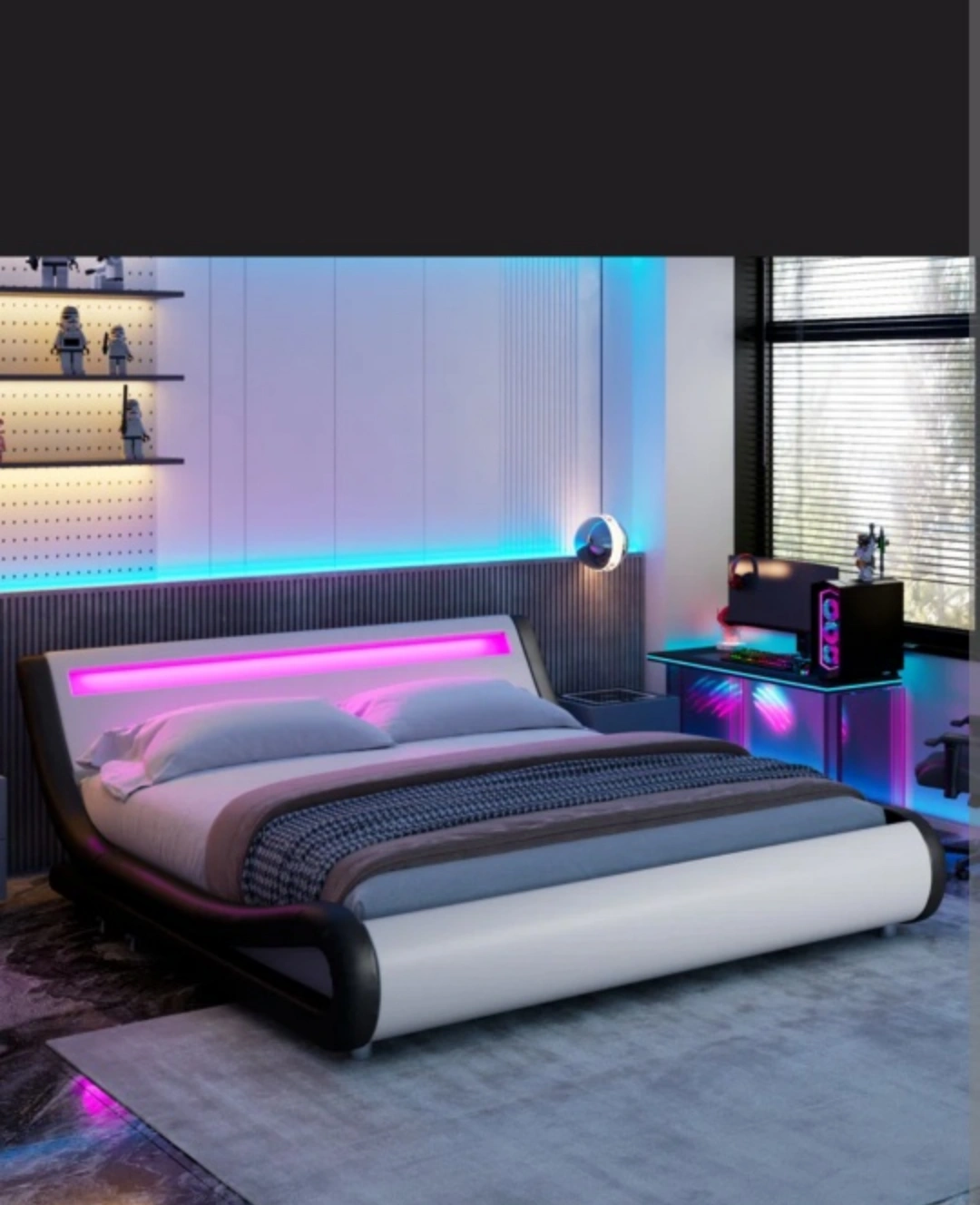 TWIN SIZE FLOATING BED with LED light strips plus mattress.