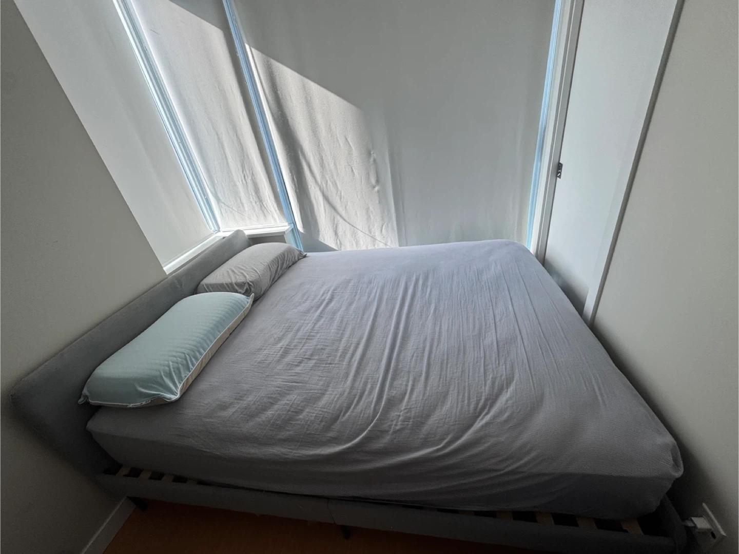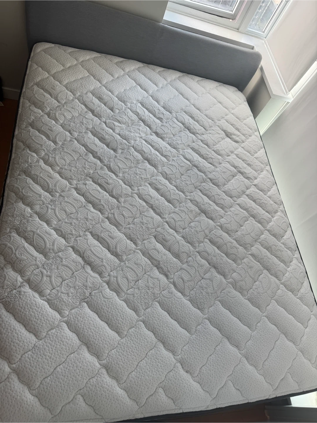 22Great condition queen bed frame from IKEA and queen mattress from Kingsdown. Colour on the bed frame is light grey. The only flaw on the bed frame is the back of the bed frame has a few minor holes on the back, however it would not be noticeable with the bed against a wall. Mattress is in very good and clean condition. This mattress retailed for $2500+. The bed frame retailed for $180+. Selling queen bed frame and mattress for $350. Comfortable medium firm mattress. Please message if you have any questions. Pickup only in Yaletown.
