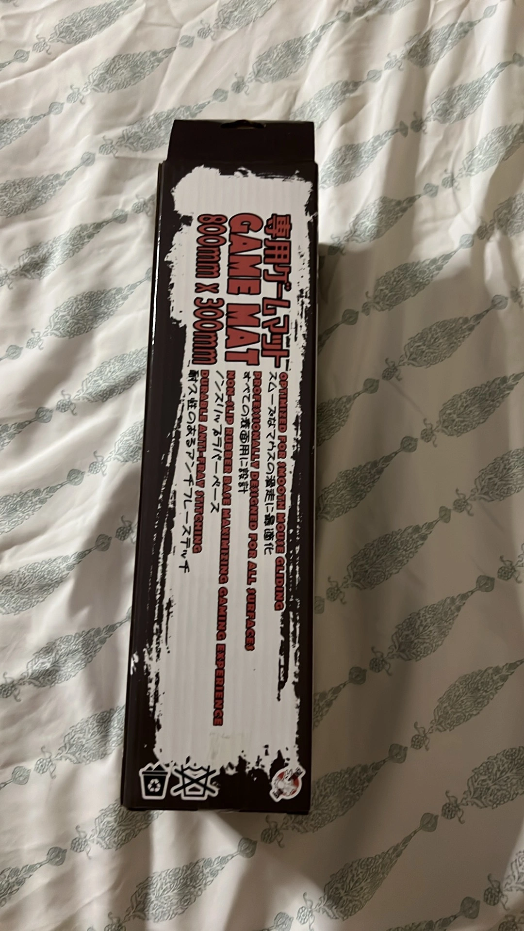 Opened once. Never used. Large gaming mouse mat in a printed cardboard box. 80 cm x 30 cm.