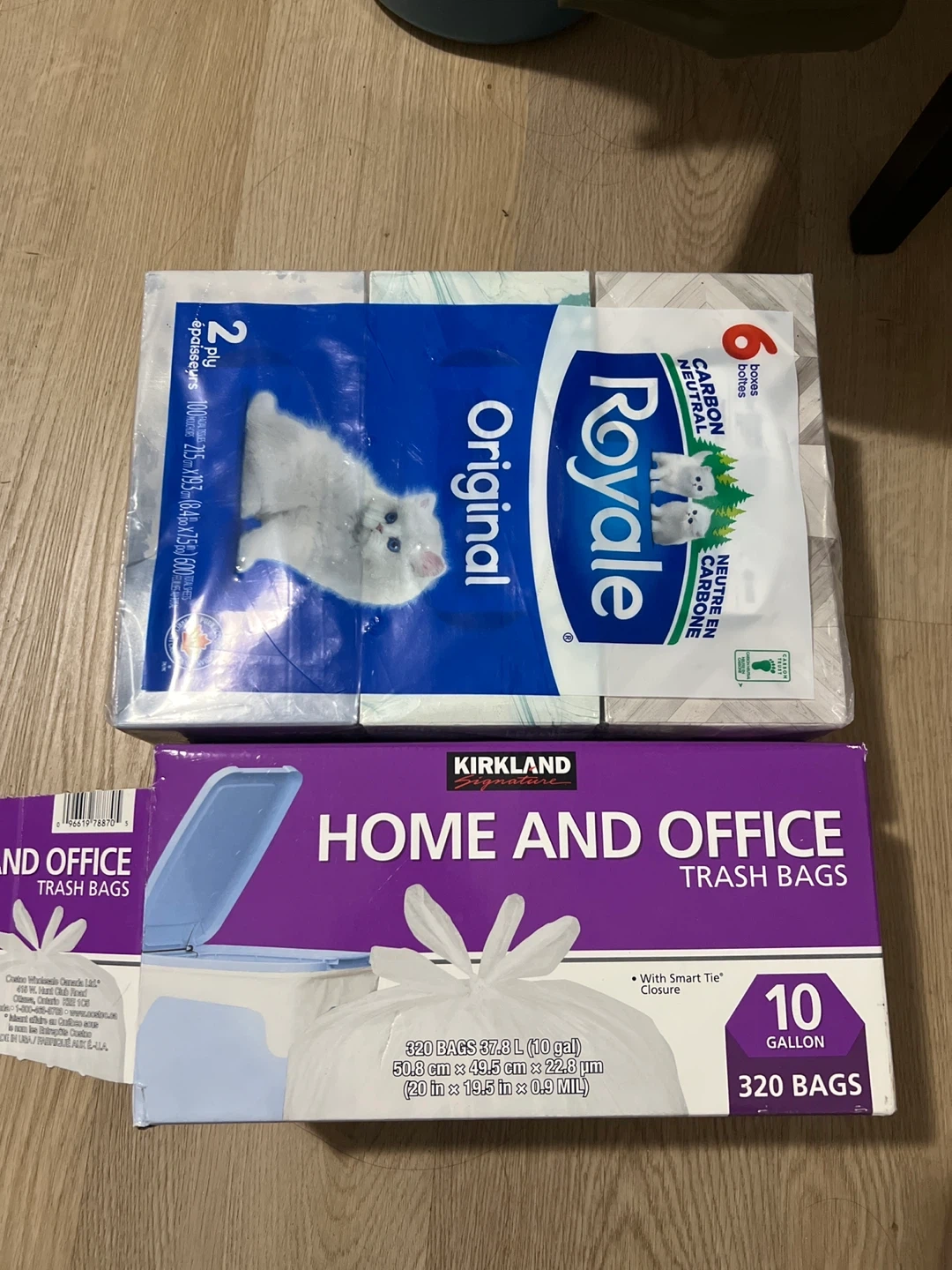 28Selling a pack of Kirkland Home and Office Trash Bags (10 gallon, 320 bags) along with Royale Original trash bags (6 rolls).