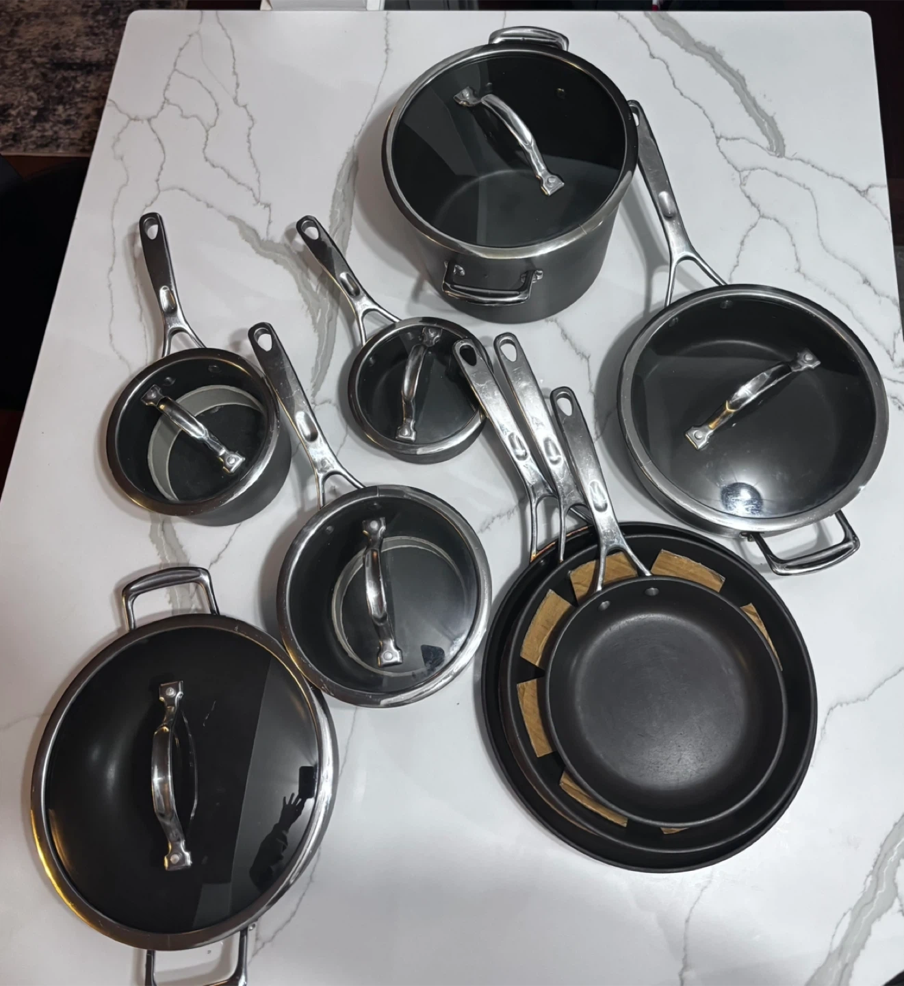 21Selling a Kirkland Signature cookware set! It includes a variety of pots and pans with lids. Perfect for equipping your kitchen with quality cookware.