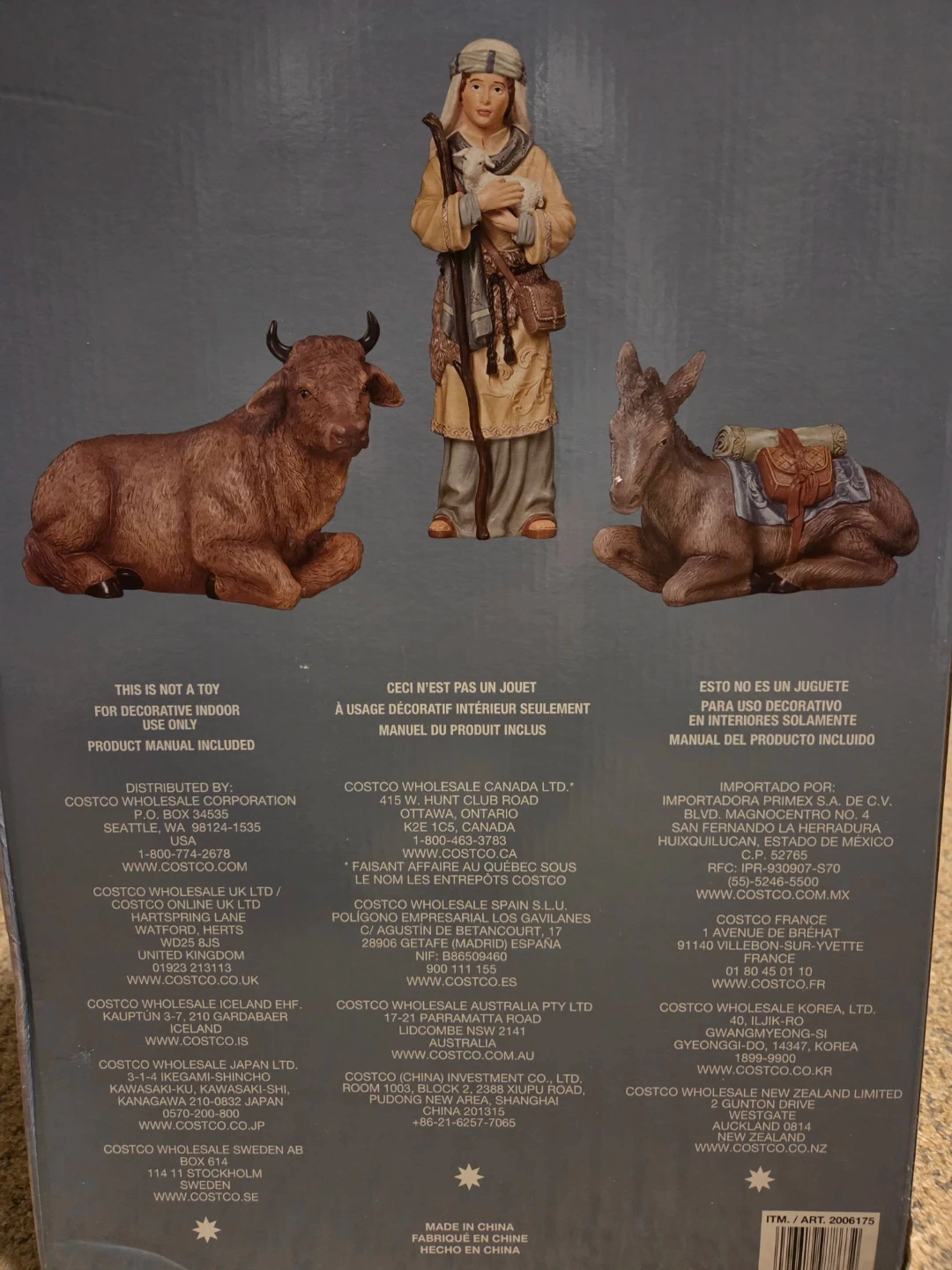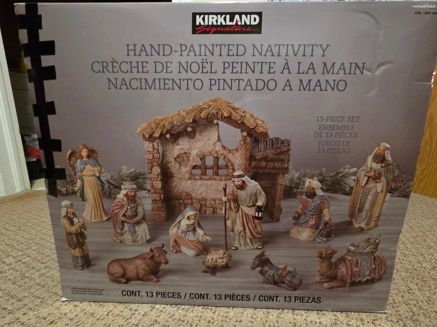 60Selling a Kirkland Signature Hand-Painted Nativity 13-piece set! This beautiful crèche de Noël is perfect for indoor decorative use. The set includes hand-painted figures and a product manual.