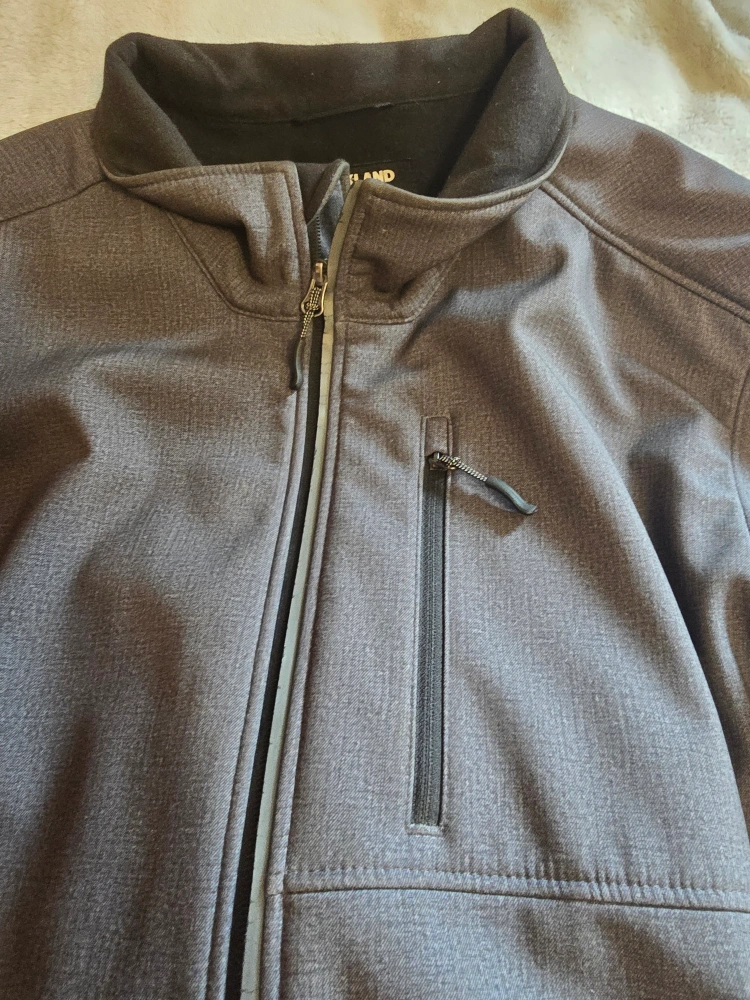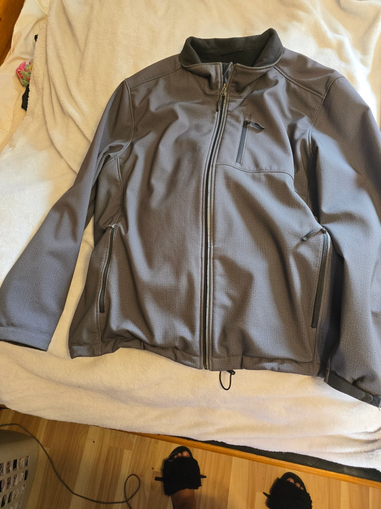 Selling a gently used Kirkland Signature jacket in size XXL. It's a stylish gray colour and features multiple zippered pockets. Perfect for layering during those chilly Canadian days!