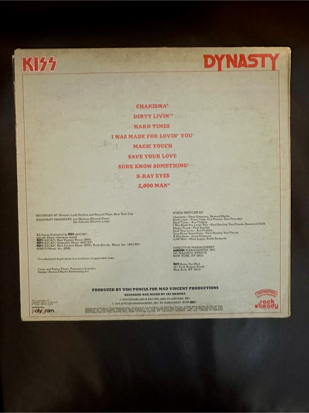 508Selling a KISS Dynasty original vinyl record. The record includes songs like I Was Made For Lovin’ You, Charisma, Dirty Livin', Hard Times, and more! Side 2 includes Magic Touch, Save Your Love, and others