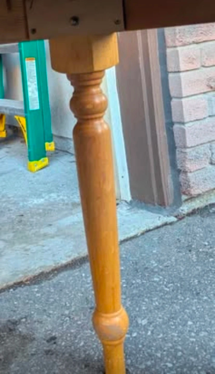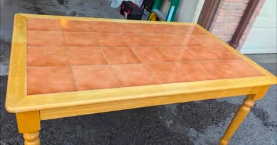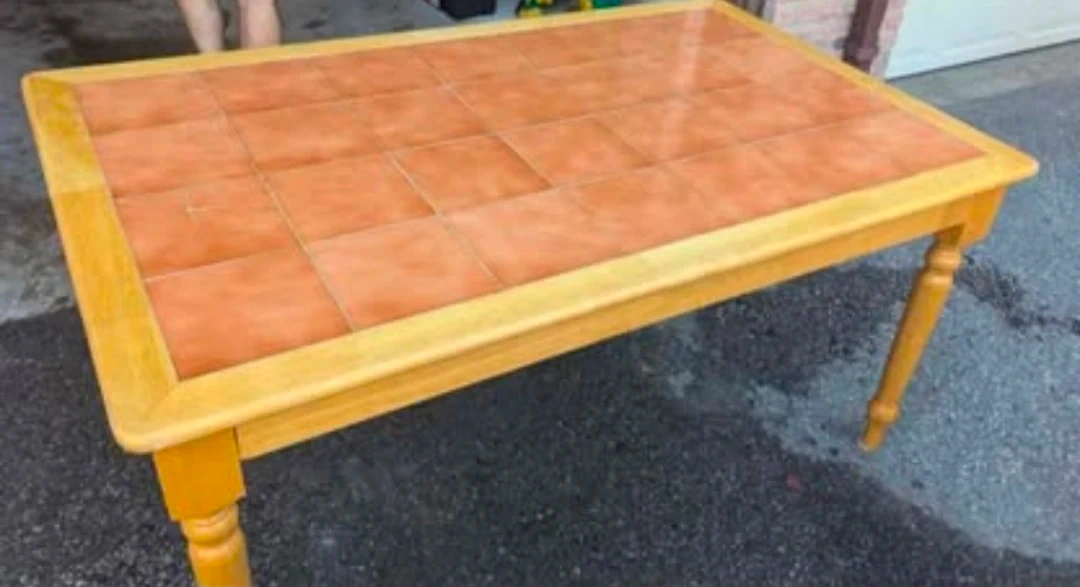 603Selling a dining table with a unique tile top. It has a light wood frame and a tiled surface. There are couple small cracks on the tiles on the one side as shown, but does not affect the function. Dimensions: - 30 inches tall - 37 inches wide - 60 inches long