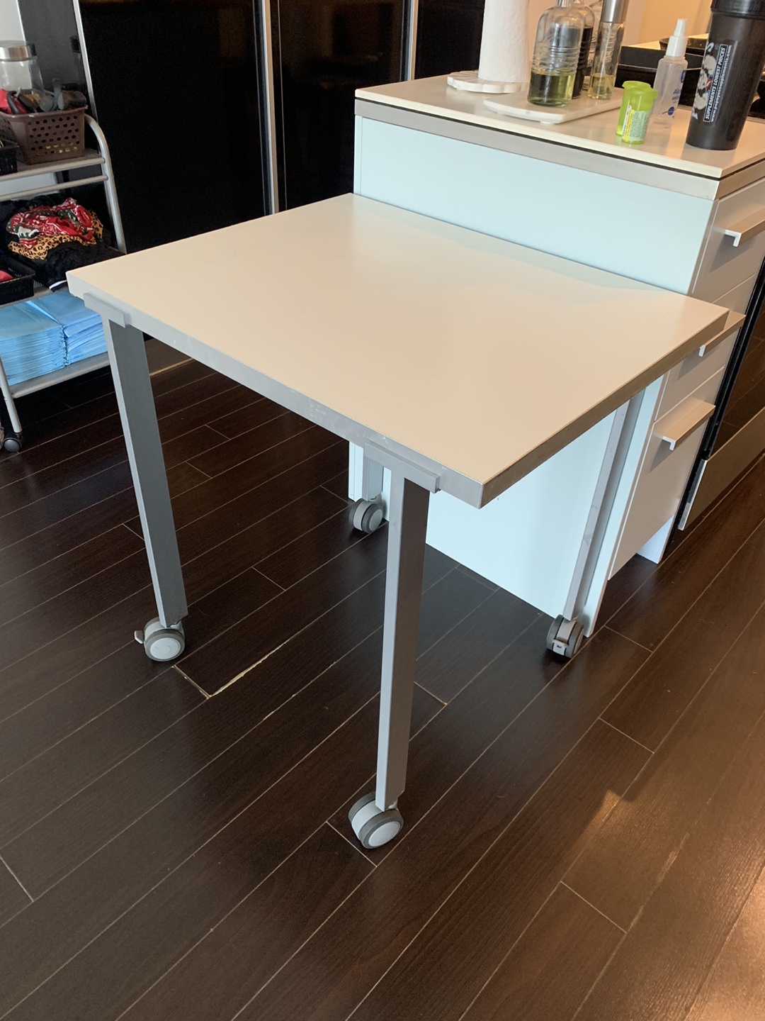 15Kitchen Island Mobile Table White top, Gray legs Good Condition - 7/10 Dimensions Width: 65cm Depth: 60cm Height: 74cm