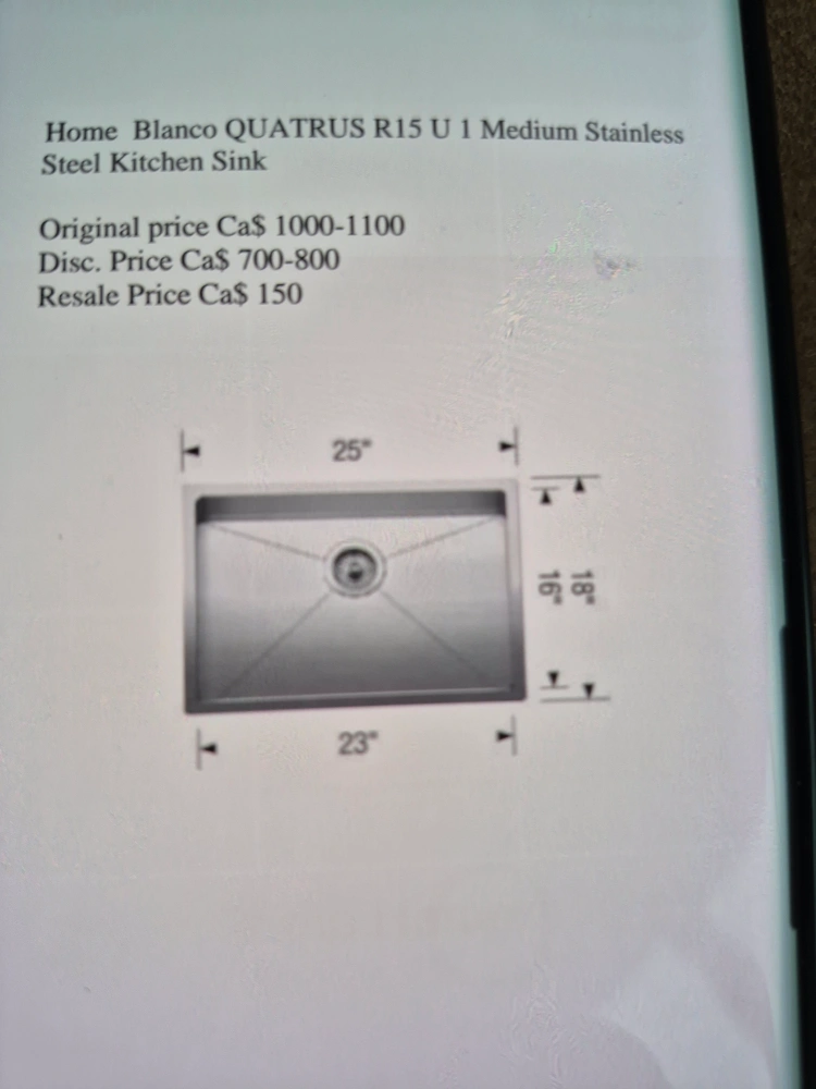 60Home Blanco QURTRUS R15 U Medium stainless steel Kitchen sink Original price 1000-1100 Resale price CA$ 100