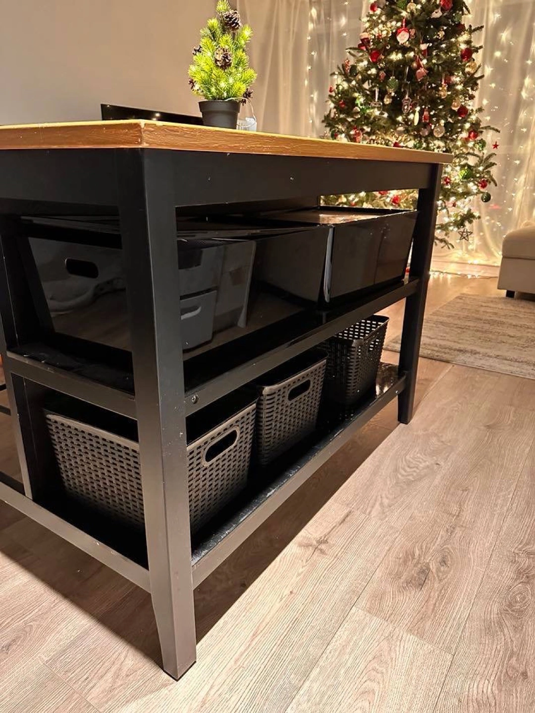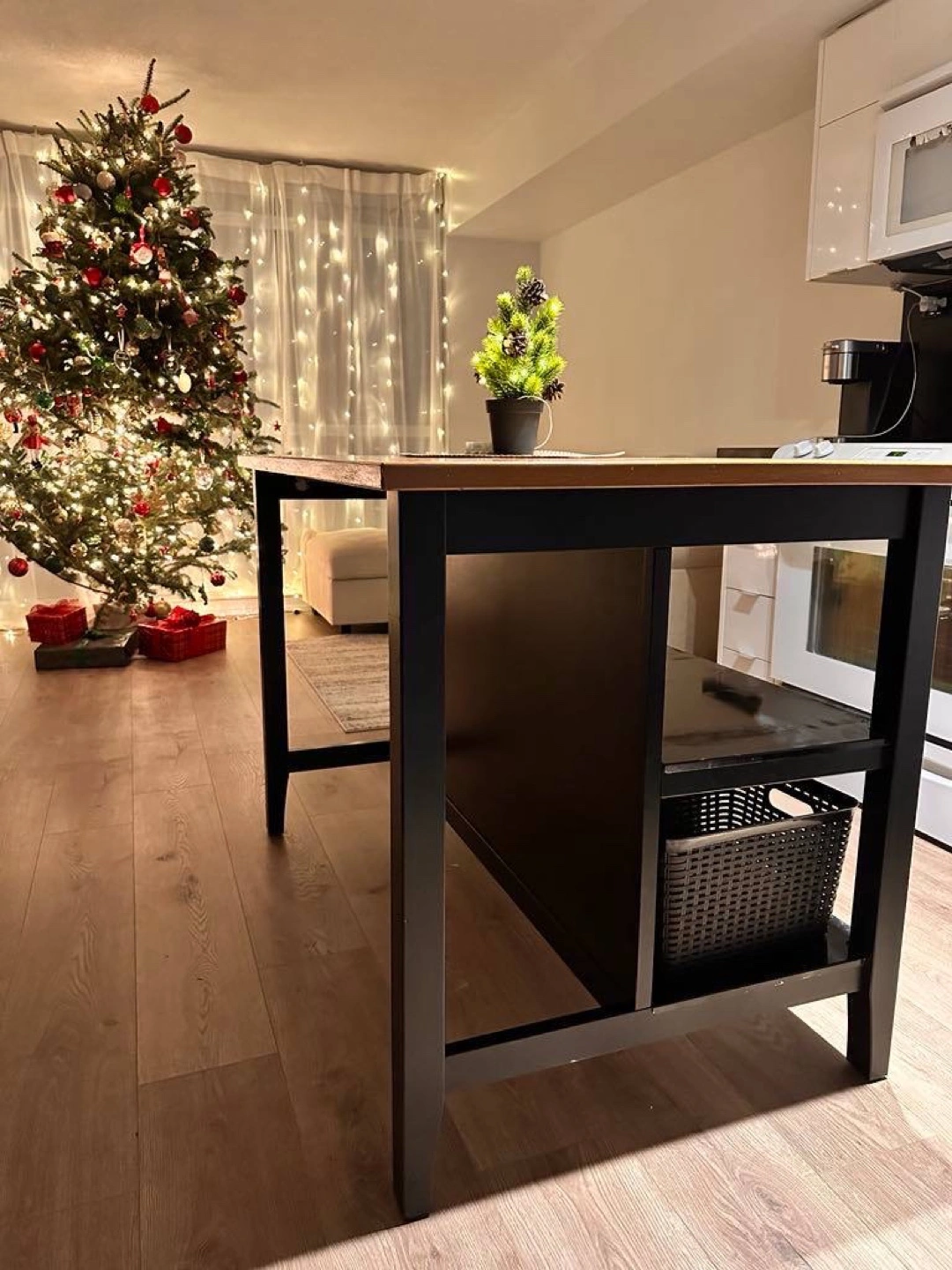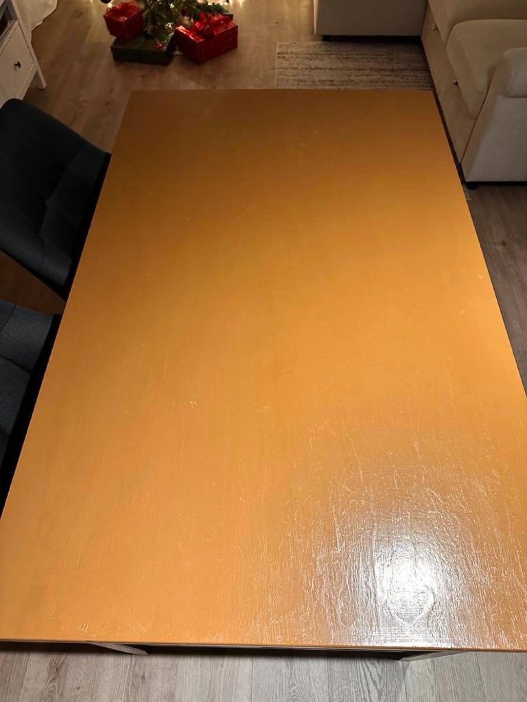 14Dimensions: Height 90 cm, Width 80 cm, Length 127 cm Condition: Refreshed and painted, used for 4 months. Description: Versatile piece that works perfectly as a kitchen island or table. Sturdy and stylish, ideal for any kitchen space.