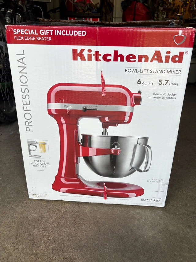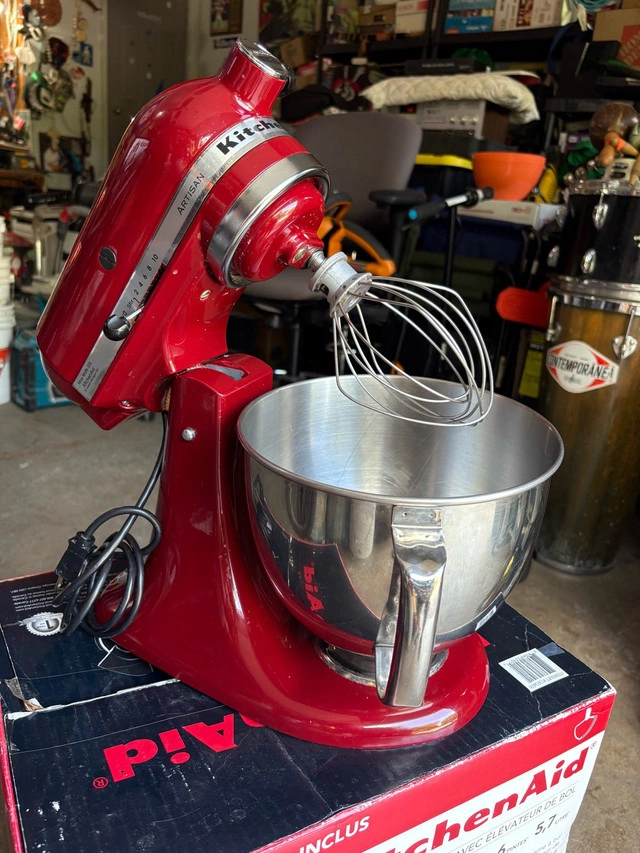 This is a used KitchenAid 6 quart bowl-lift stand mixer, perfect for all your baking needs. The unit is in perfect working condition. Key Features: * 6-quart stainless steel bowl * Bowl-lift design for heavy mixtures * Multiple speed settings * Includes coated flat beater, dough hook, and wire whip This mixer is ideal for anyone who loves to bake and needs a reliable, high-capacity machine. unit like new not used much at all. used a handful of times got as gift If you're reading this, yes, it’s still available – ready to whip its way into your kitchen!