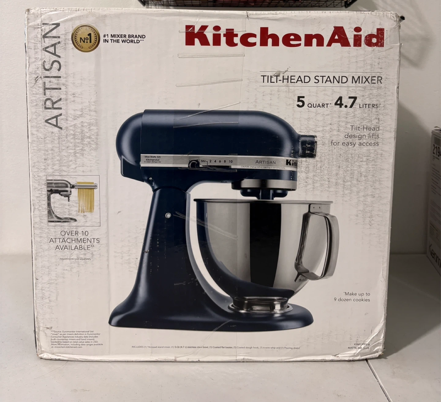 65Model number: KSM150PSIB MSRP: $474.99 (check KitchenAid website for reference) ***PLEASE READ - There are minor scratches all over the machine and two attachments (please see photos) • 5 Quart Capacity for Small or Large Batches • Easily add Ingredients with the Tilt-Head Design • 10 Speeds for Nearly any Task or Recipe
