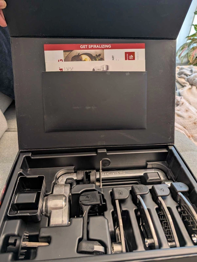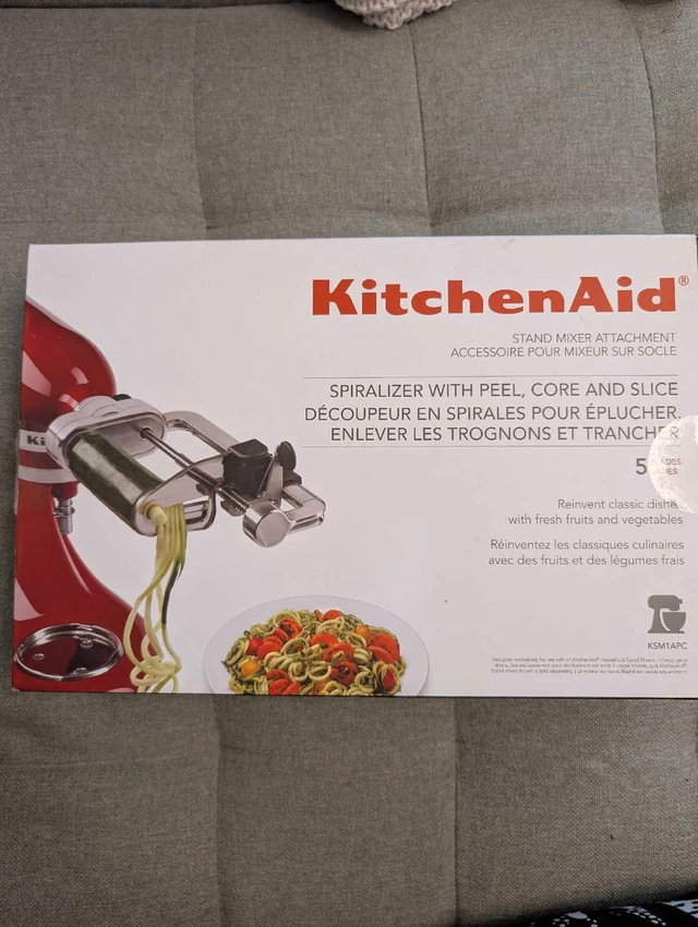 18Stand mixer attachment Spiralizer with Peel, core and slice attachment for fruits and veggies. Opened box but unused. Condition: New For Sale By: Owner Curbside pick up: Yes Cashless payment, Cash accepted