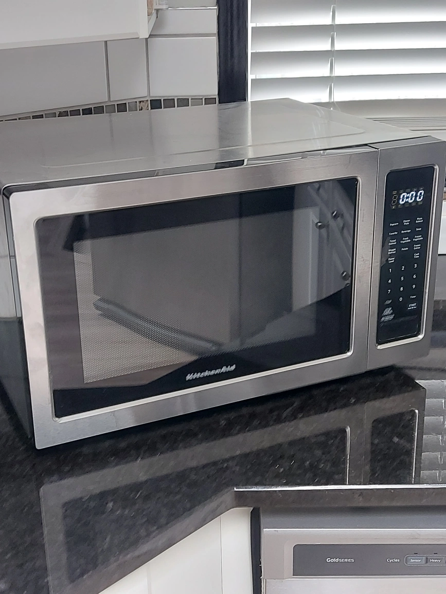 Selling a KitchenAid countertop microwave in stainless steel. It's in great shape and ready to use in your kitchen! It has a variety of preset cooking options and a digital display for easy operation. It's perfect for reheating leftovers or cooking a quick meal