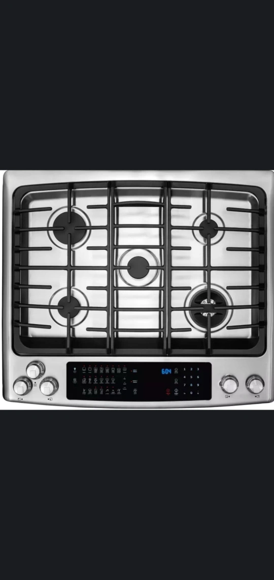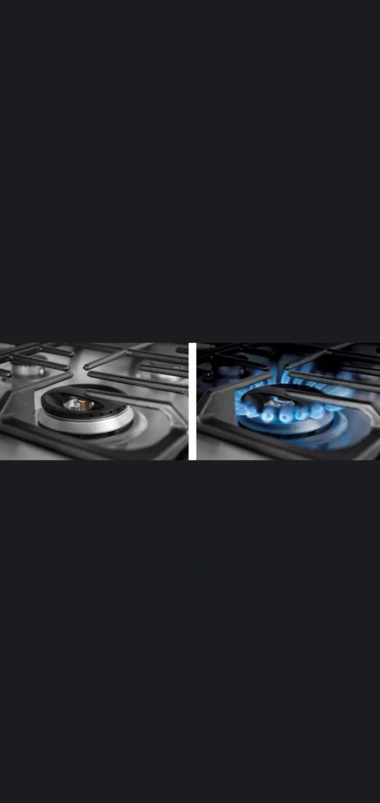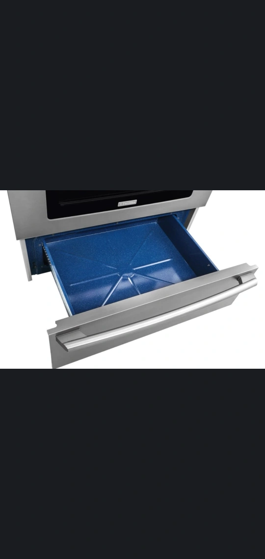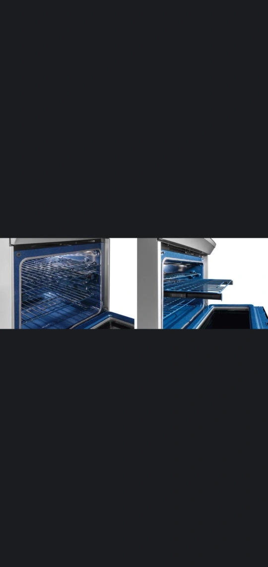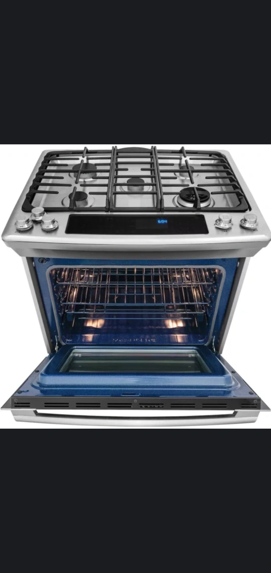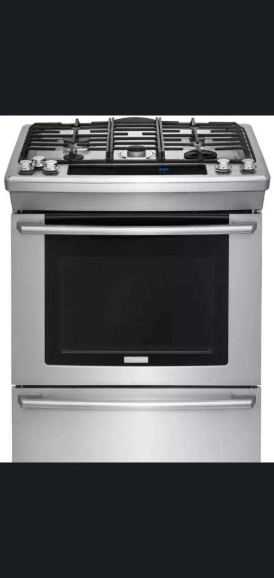 Selling a KitchenAid gas range in stainless steel! It features a cooktop with multiple burners and an oven with a baking drawer. The interior is a beautiful blue colour. Perfect for any home chef!