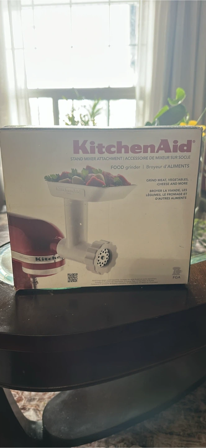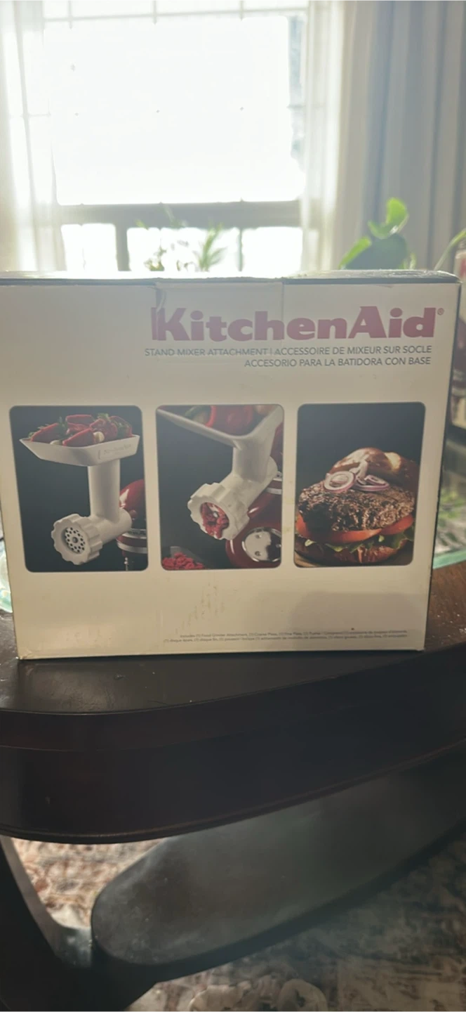 Selling a KitchenAid stand mixer attachment! It's a food grinder for grinding meat, vegetables, and other foods. It comes with the original box. Great for making your own ground meat at home