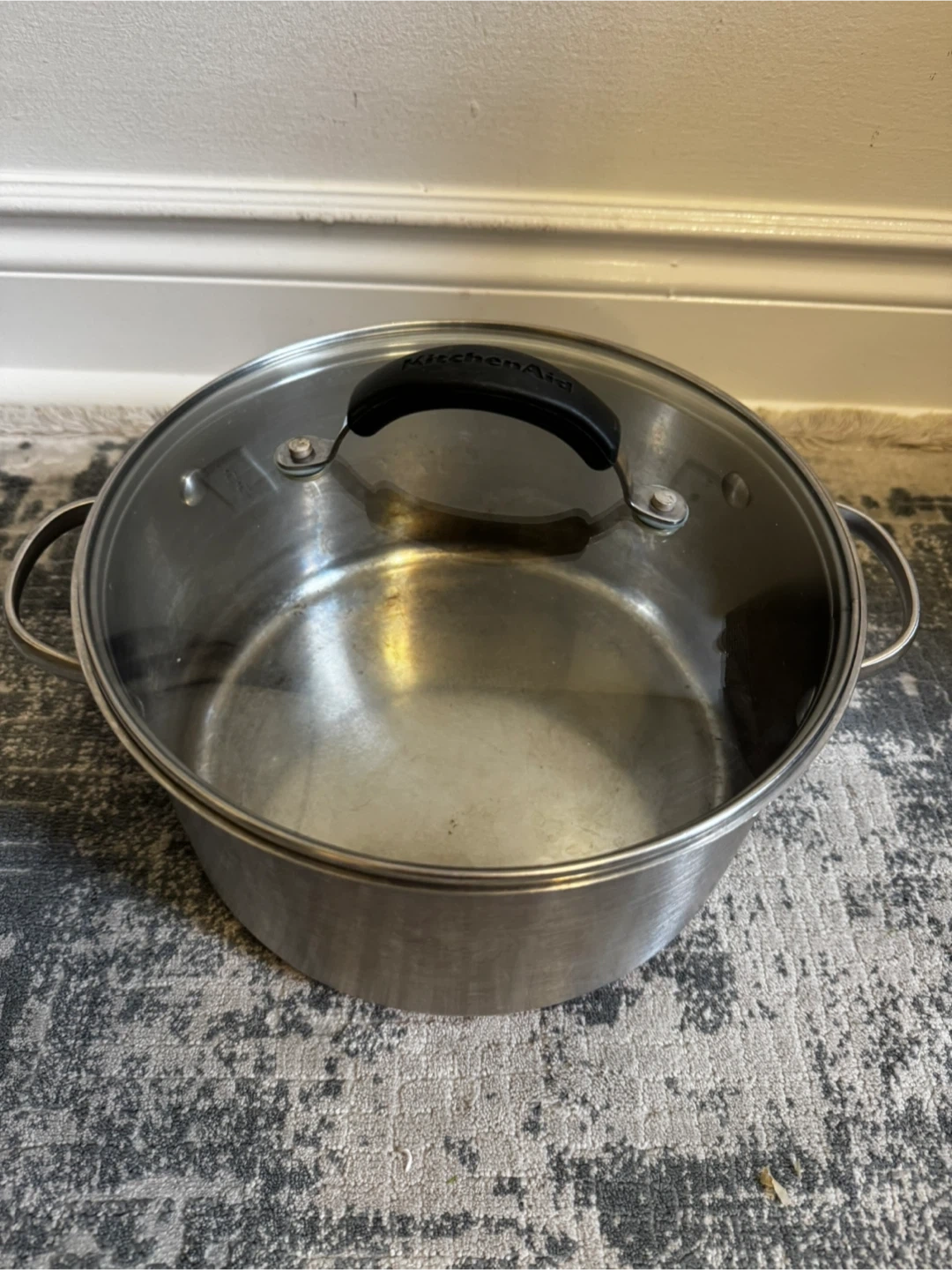 Selling a KitchenAid stock pot with a glass lid. The pot is in used condition. It measures approximately 10 inches in diameter. $15 Yonge and finch area