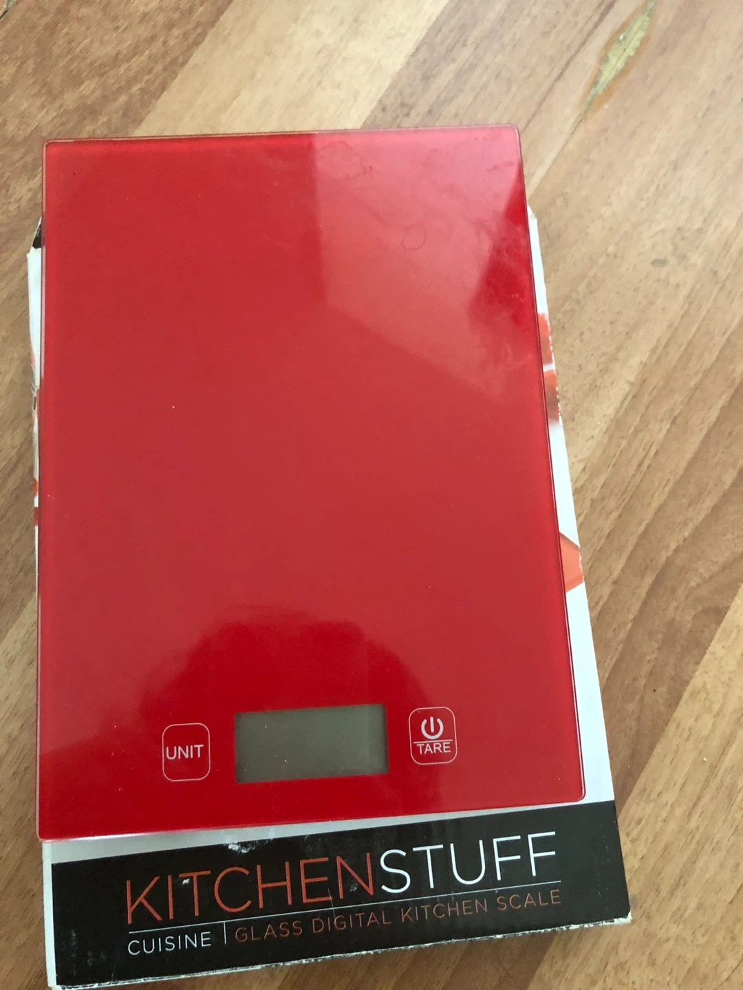 Selling a Kitchenstuff cuisine glass digital kitchen scale in red. It is in great condition and comes with the box