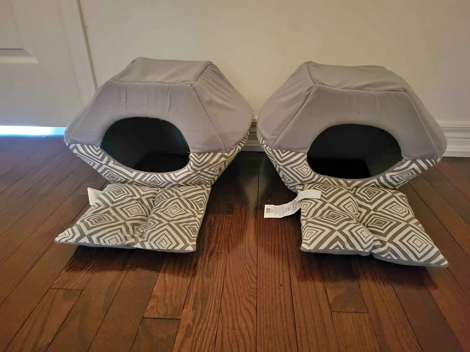 Used maybe maximum 5 times to sleep in. Cats aren't interested in it. $25 for both. No rips no stains almost new condition. It's been washed and cleaned.