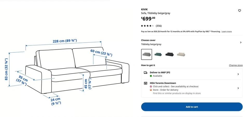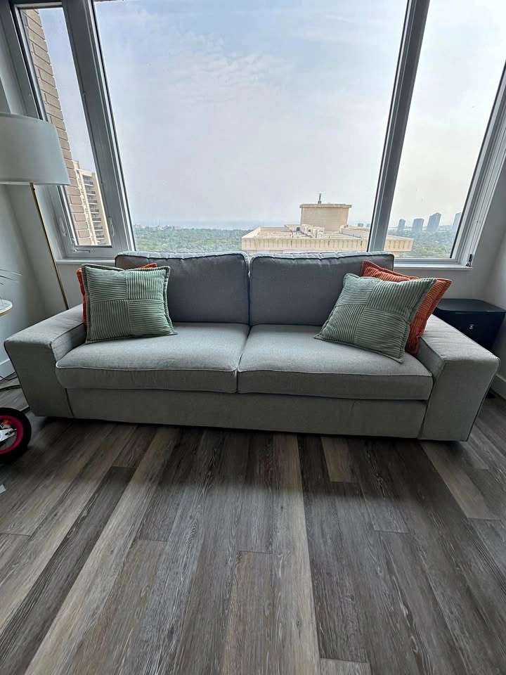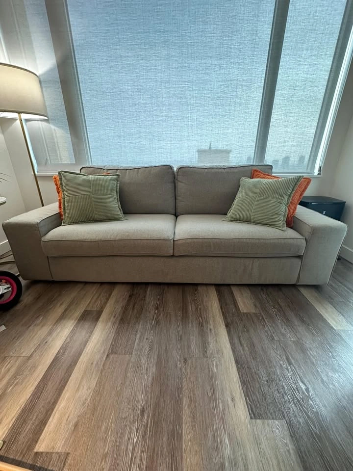 2 years of use. Pet free and smoke free house. Measurements Width: 228 cm (89 3/4 ") Depth: 95 cm (37 3/8 ") Height: 83 cm (32 5/8 ") Seat width: 180 cm (70 7/8 ") Seat depth: 60 cm (23 5/8 ") Seat height: 45 cm (17 3/4 ")