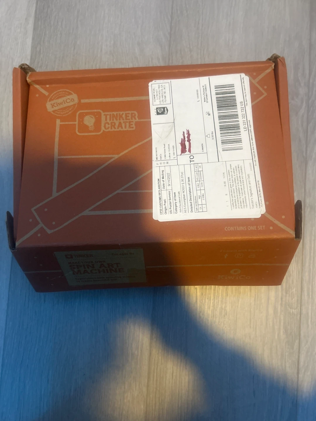 137Selling a KiwiCo Tinker Crate: Spin Art Machine! This set contains one set. It's a fun and engaging activity for kids who love to create and experiment (Half finished and lost everything)