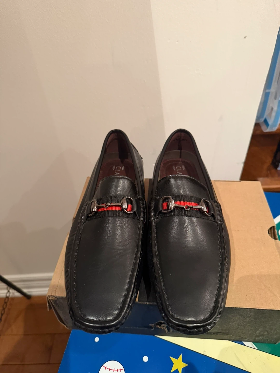 Black Leather Loafers with Red Accent
