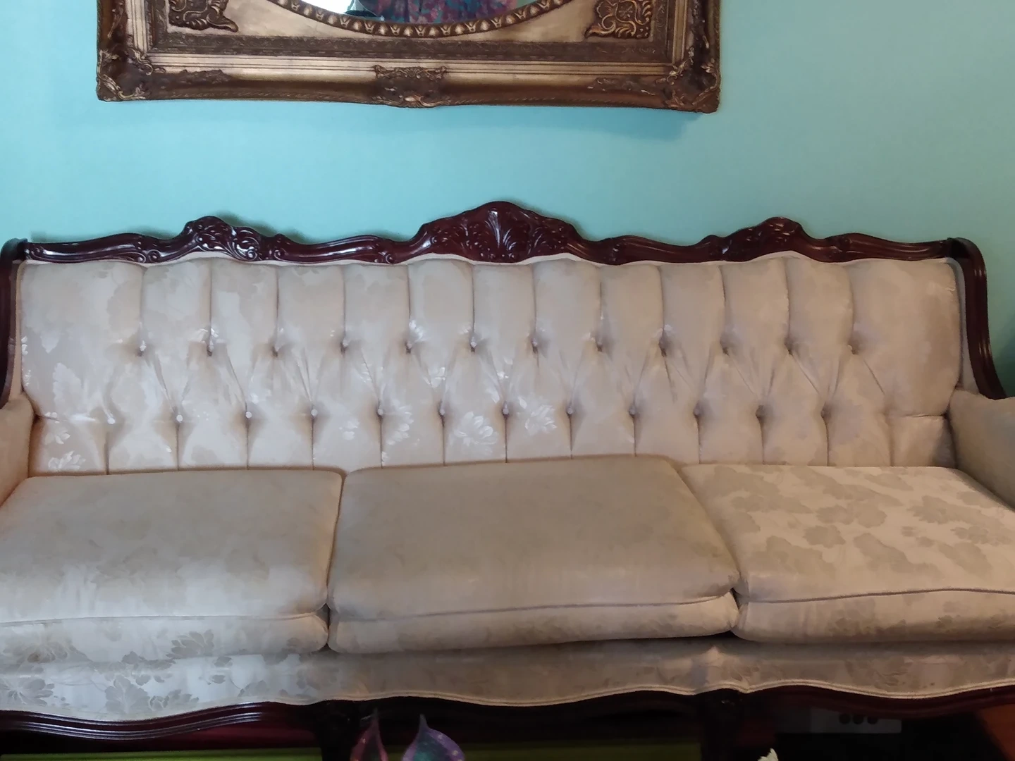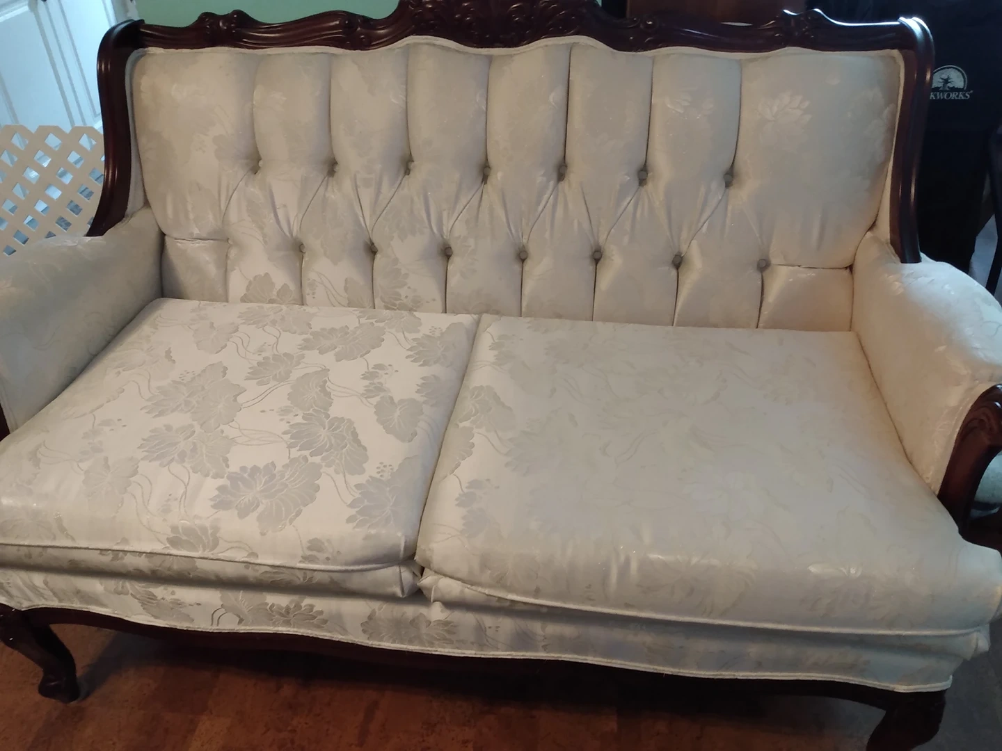 This white with walnut finish sofa set is in excellent condition, very clean and well looked after. The sofa is "80 wide and the love seat is "50 wide. Asking $400 firm price. Cash only sale. Must pick up.