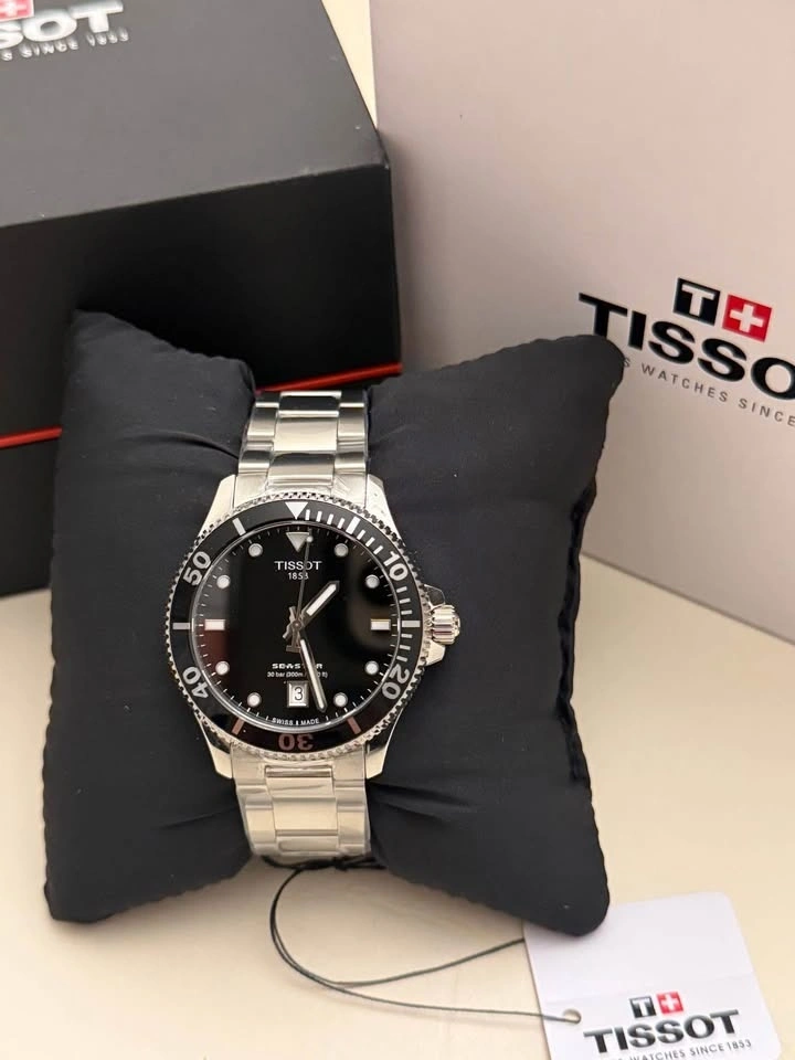 Brand new, never worn. 100% authentic Swiss-made dive-inspired watch sleek black dial and rugged build for daily wear or serious water use.
