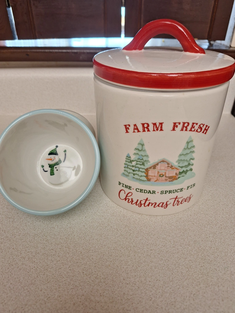 Christmas Theme Cookie Jar and snowman bowl. $20 for both
